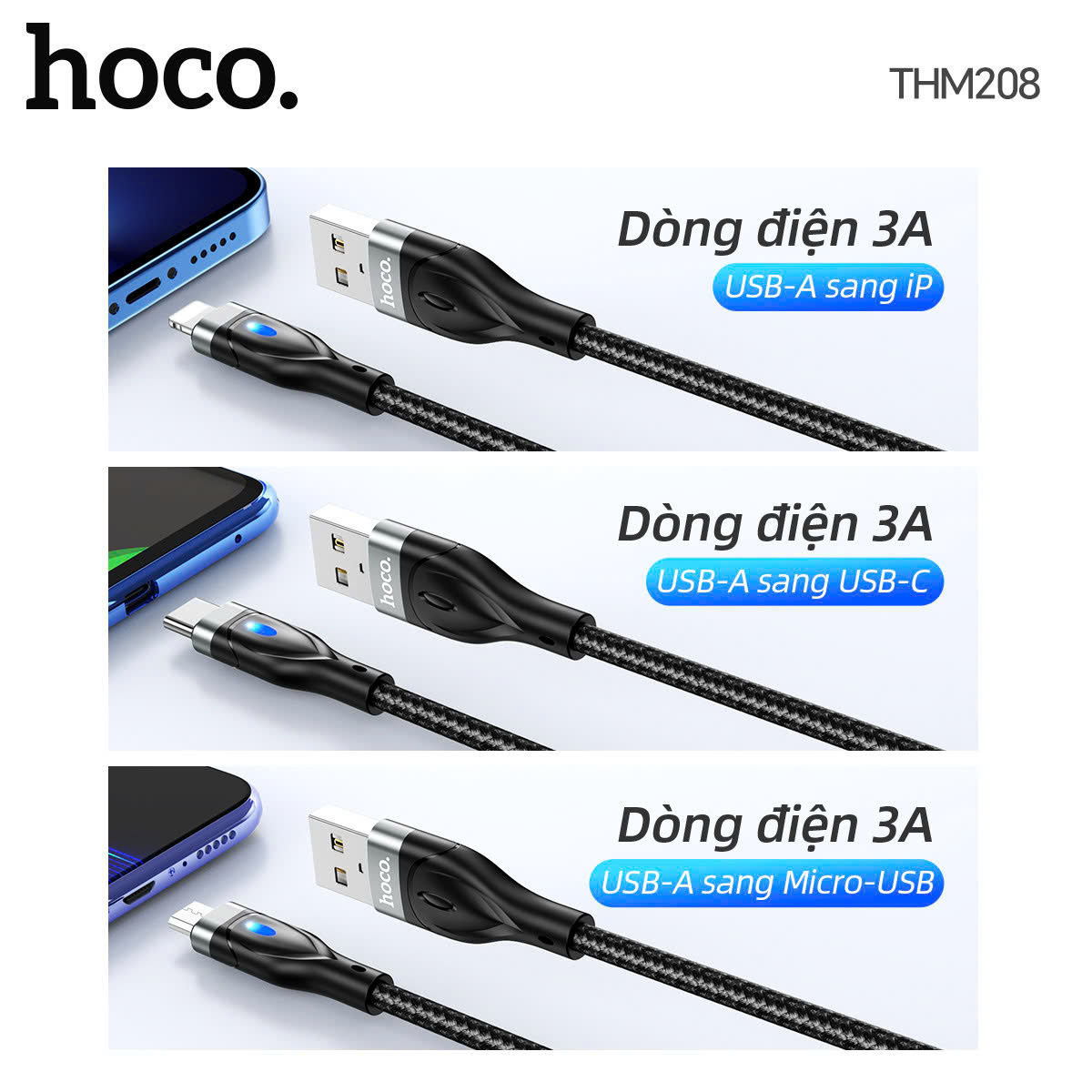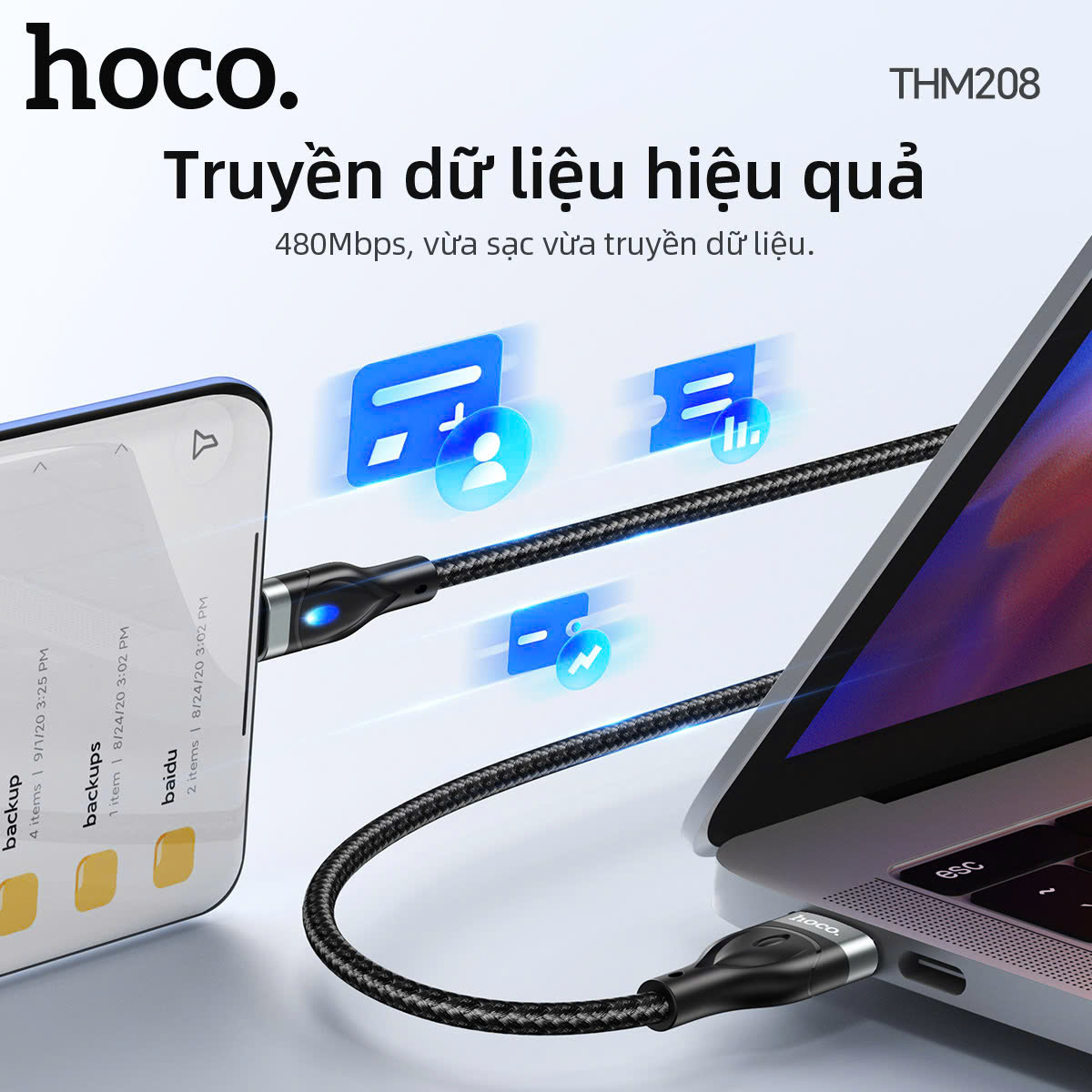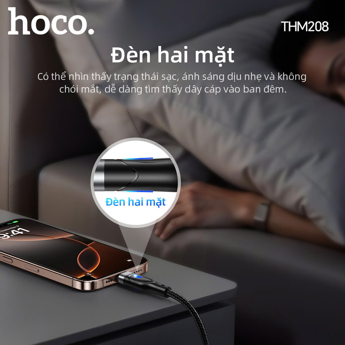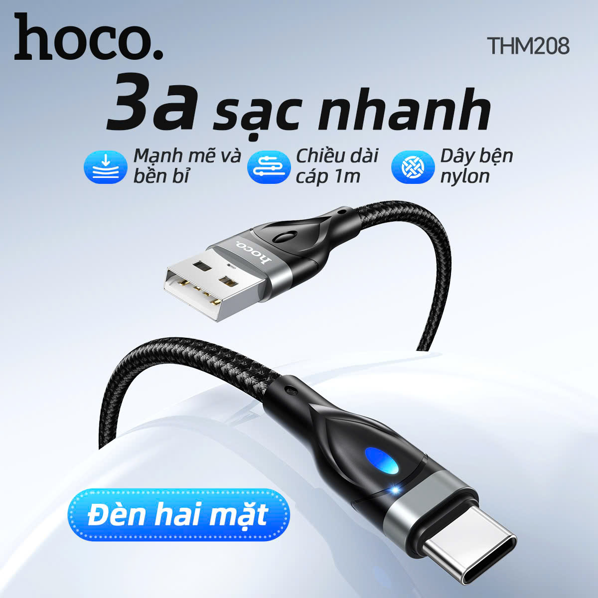 Cáp sạc dữ liệu THM208 Hawkeye có đèn Type-C (Dài = 1M)
