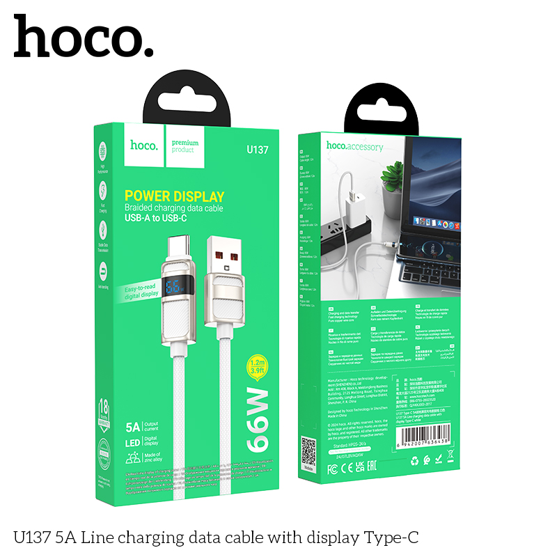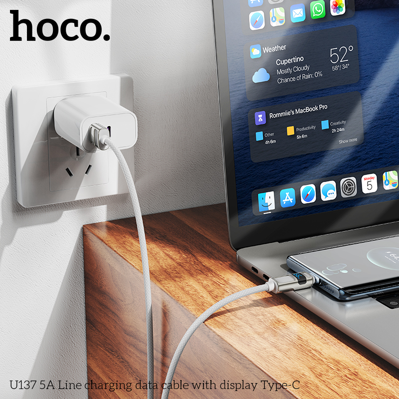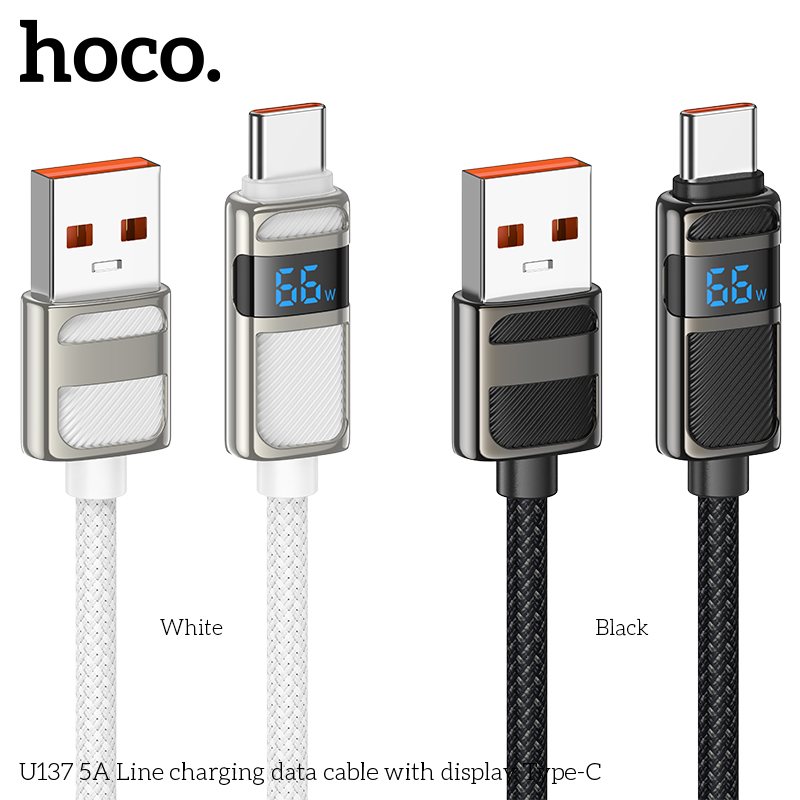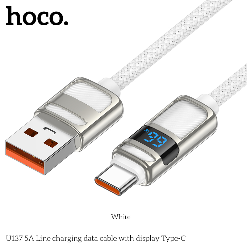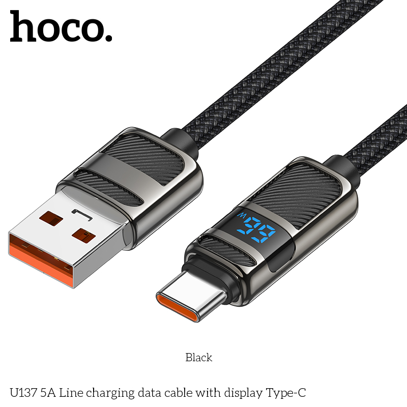Cáp sạc dữ liệu U137 5A có màn hình Type-C