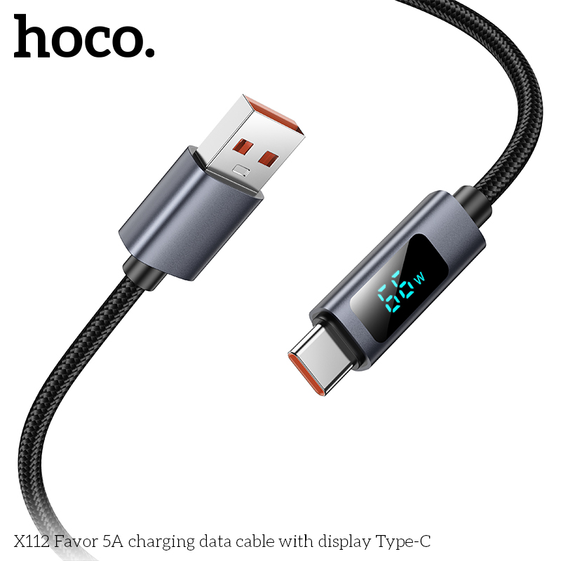 Cáp sạc dữ liệu X112 Favor 5A có màn hình Type-C