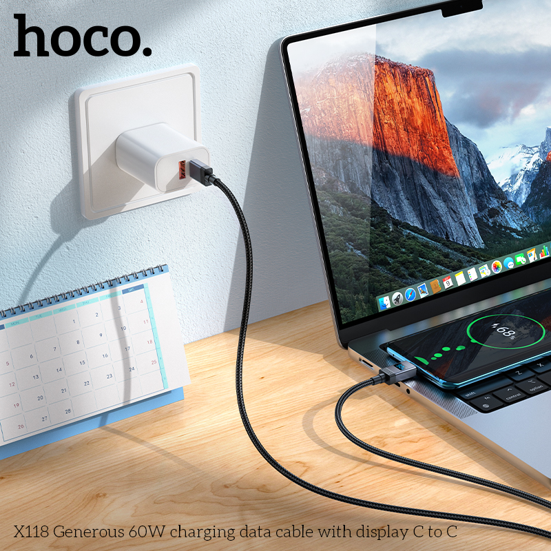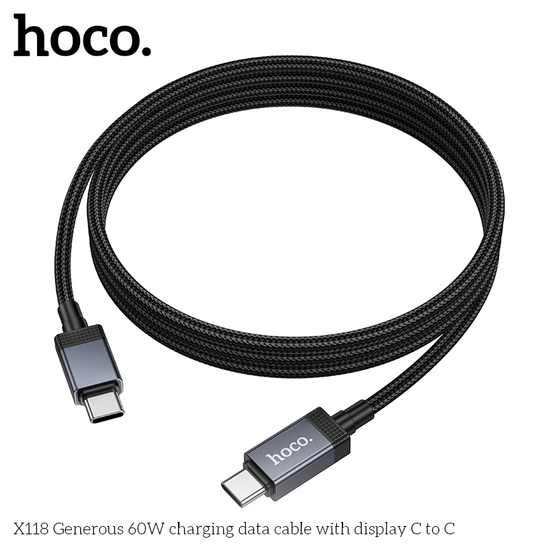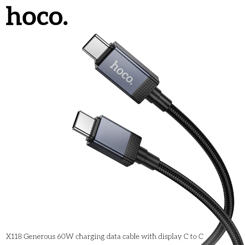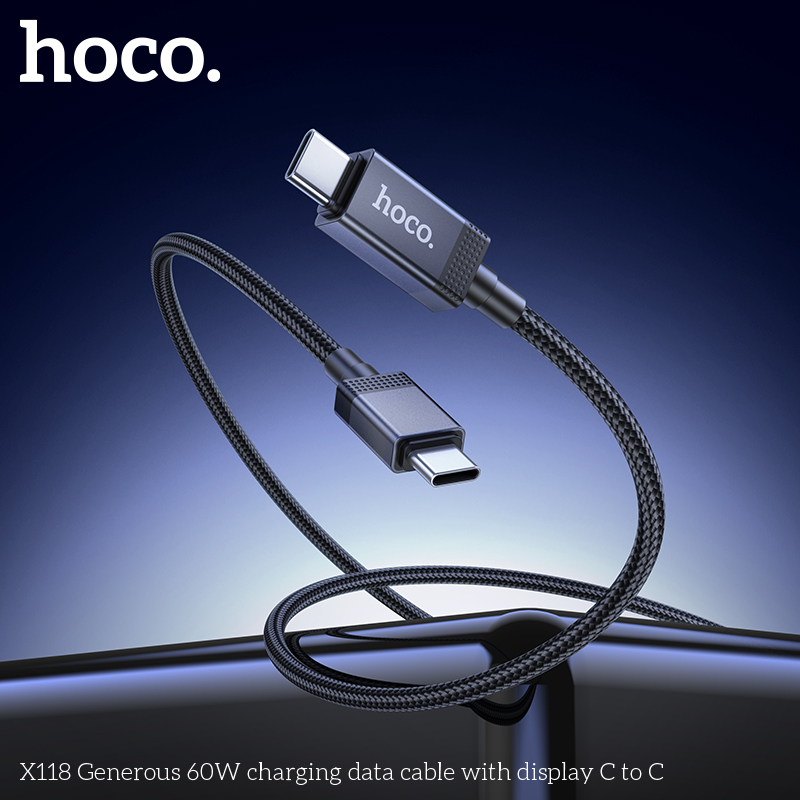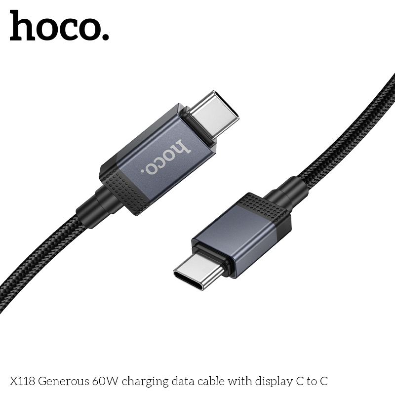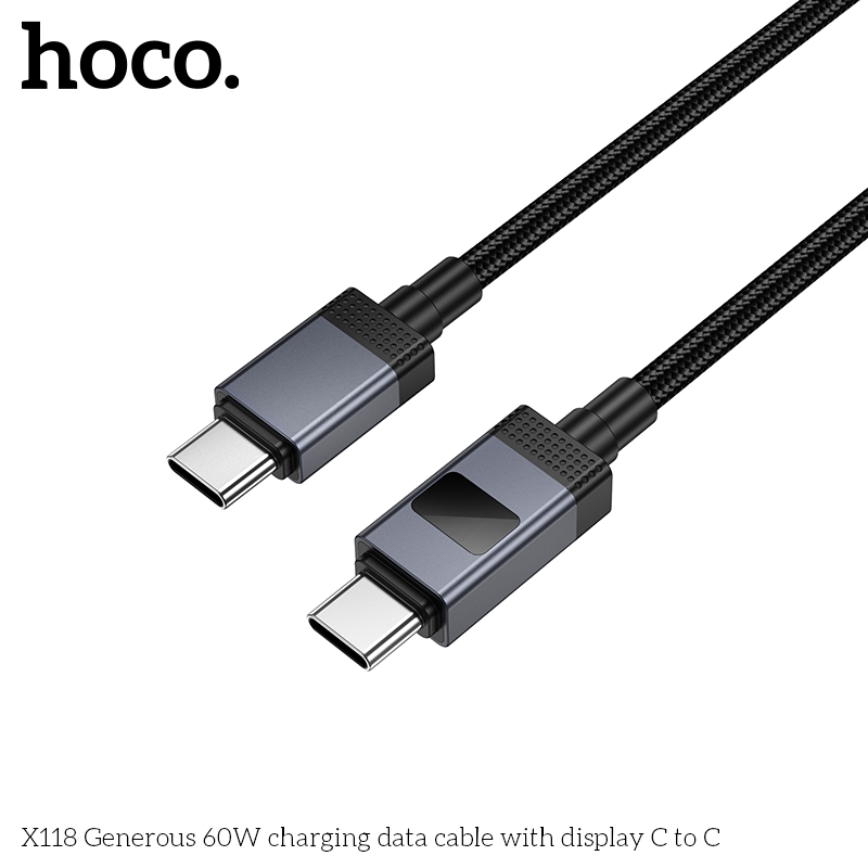 Cáp sạc dữ liệu X118 Generous 60W có màn hình hiển thị Type-C đến Type-C