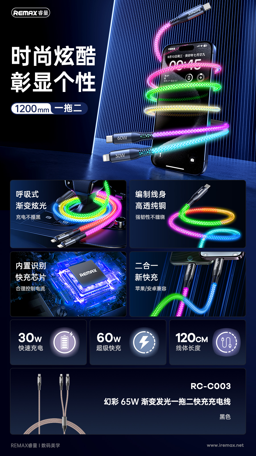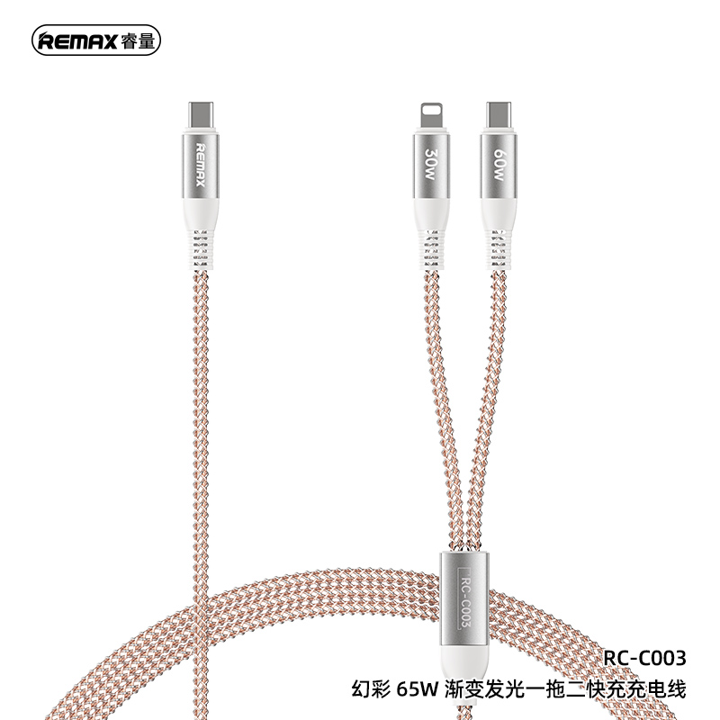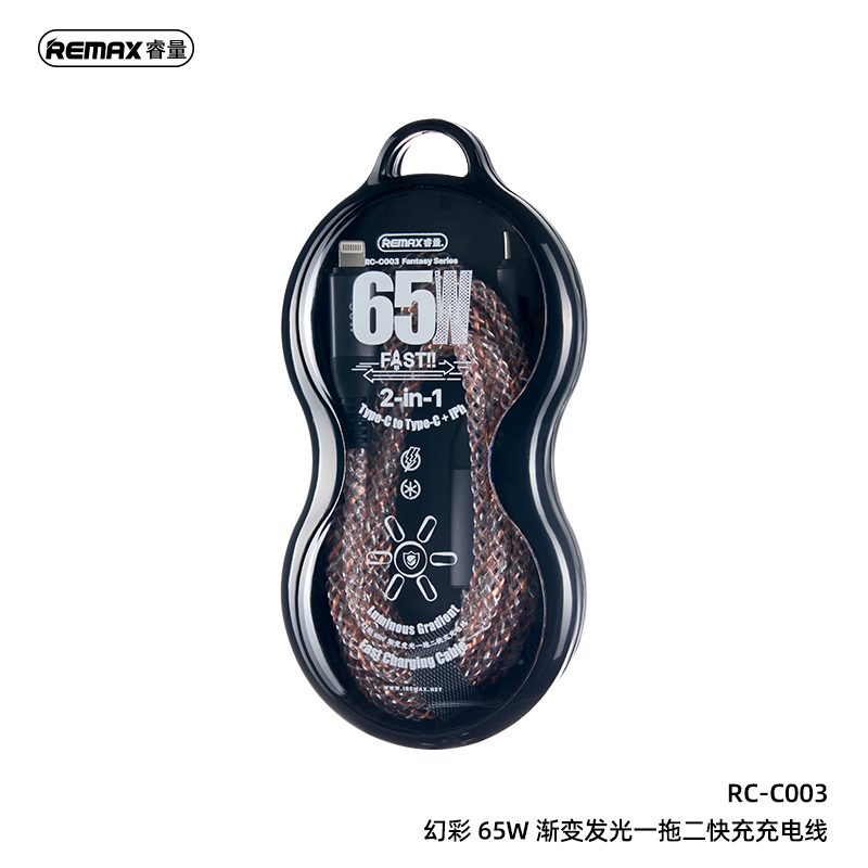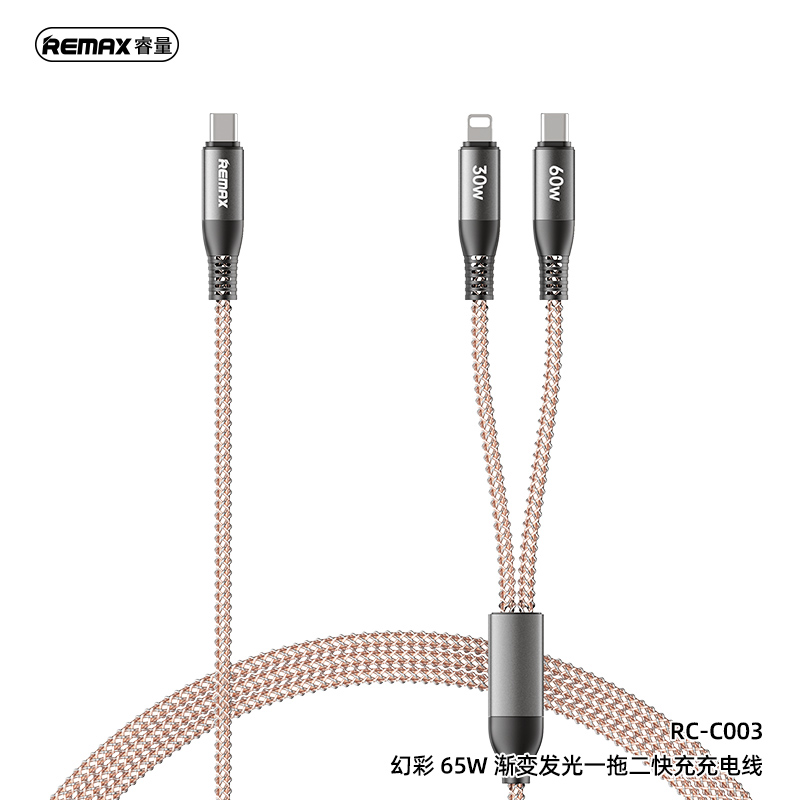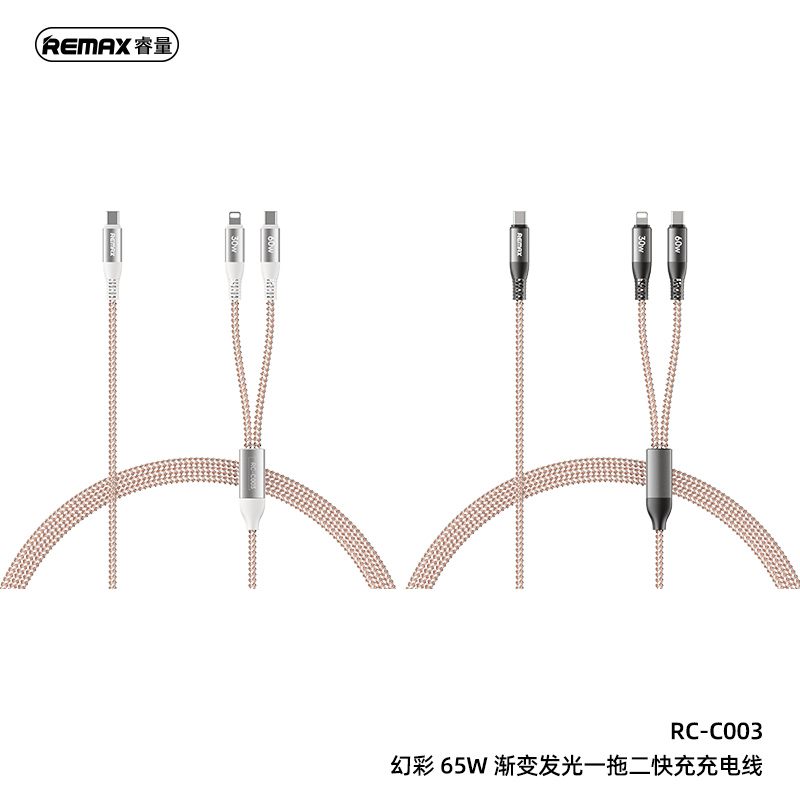 Cáp sạc nhanh đa năng REMAX 65W 2-in-1 RC-C003 C-C+L