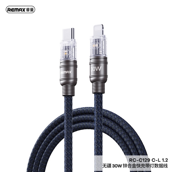 Cáp sạc nhanh REMAX RC-C129 C-L 1.2M 30W (Type C To Lightning)
