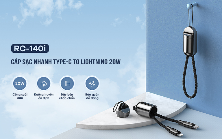 Cáp sạc rút gọn REMAX Raython Series 20W Portable Lanyard Data Cable RC-140i (Type C-Lightning)