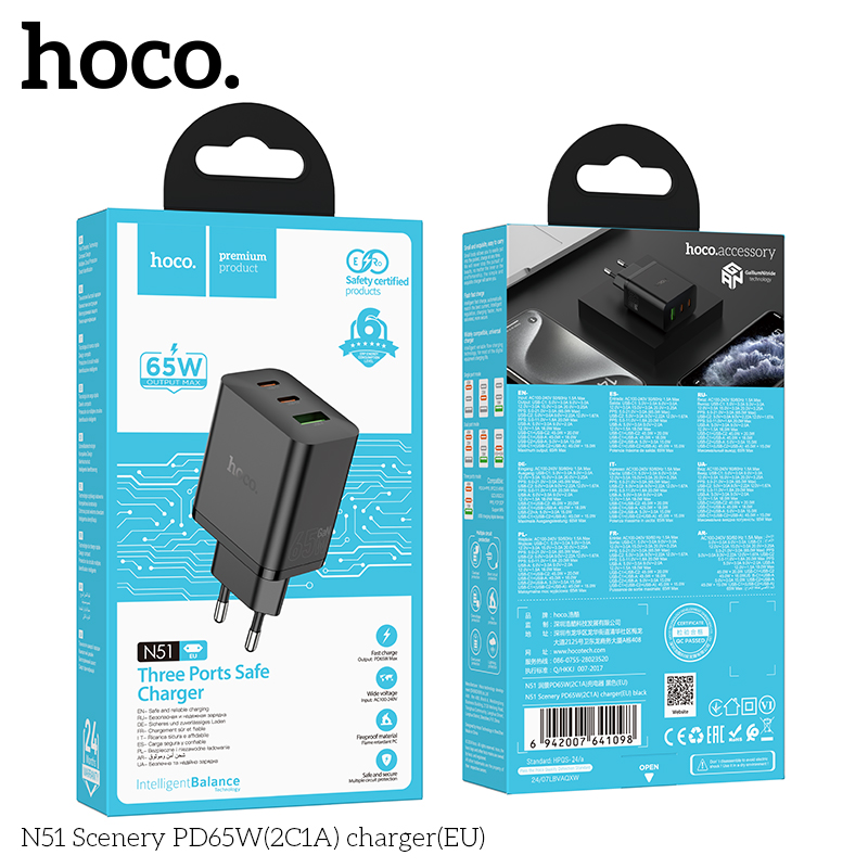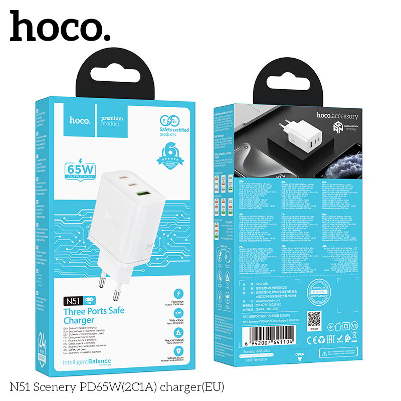 Cốc sạc N51 Scenery 3 cổng PD65W(2C1A)(EU)