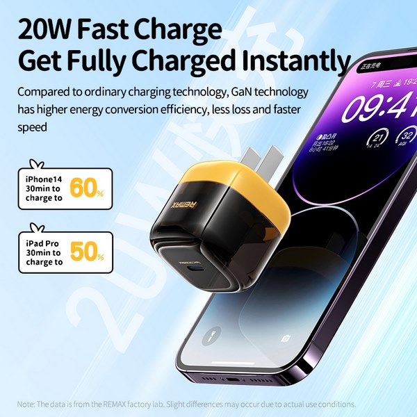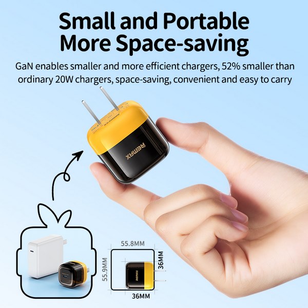 Cốc sạc nhanh REMAX RP-U115 CN GaN 20W PD+QC 1 cổng Type C Sử dụng công nghệ GaN