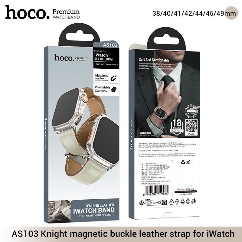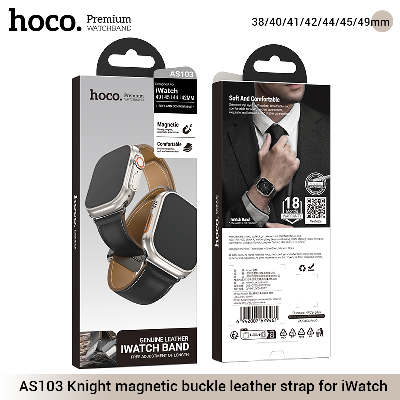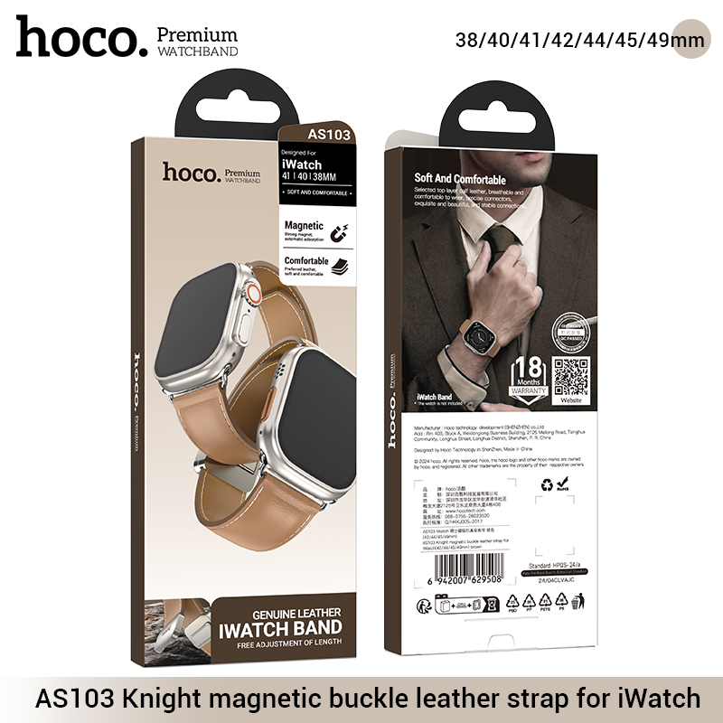Dây đeo bằng da có khóa nam châm AS103 Knight cho iWatch (38/40/41mm)