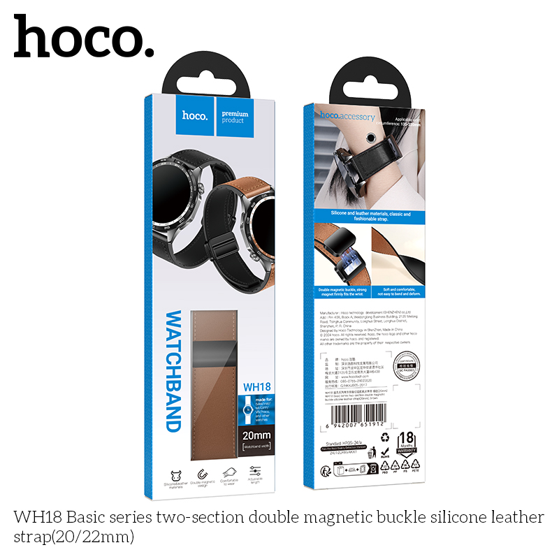 Dây đeo bằng da silicon khóa từ kép hai phần WH18 Basic series (20mm)