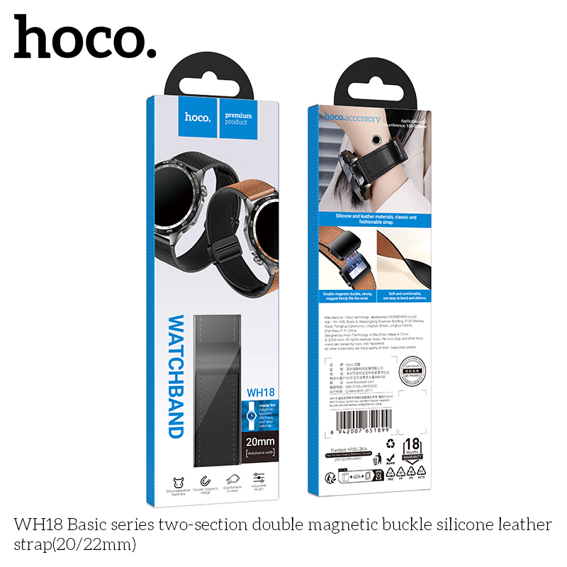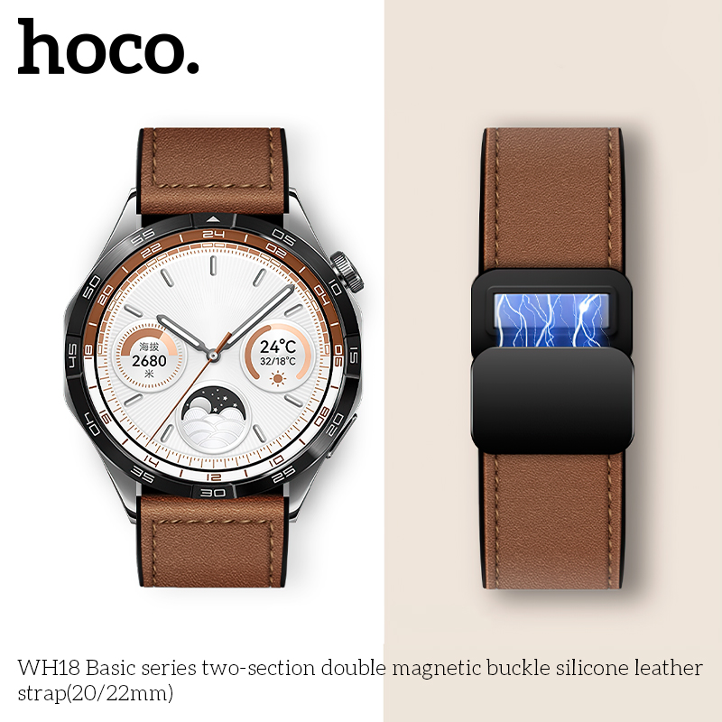 Dây đeo bằng da silicon khóa từ kép hai phần WH18 Basic series (22mm)
