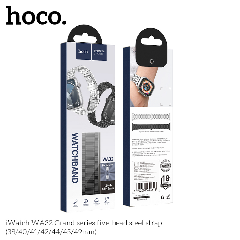 Dây đeo đồng hồ thép năm hạt iWatch WA32 Grand series (42/44/45/49mm)