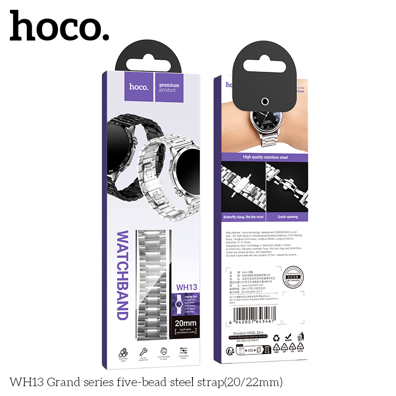Dây đeo đồng hồ thép năm hạt WH13 Grand series (20mm)