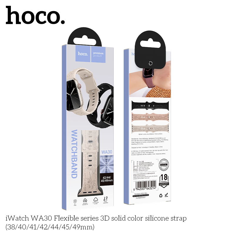 Dây đeo silicon 3D màu trơn iWatch WA30 Flexible series (42/44/45/49mm)