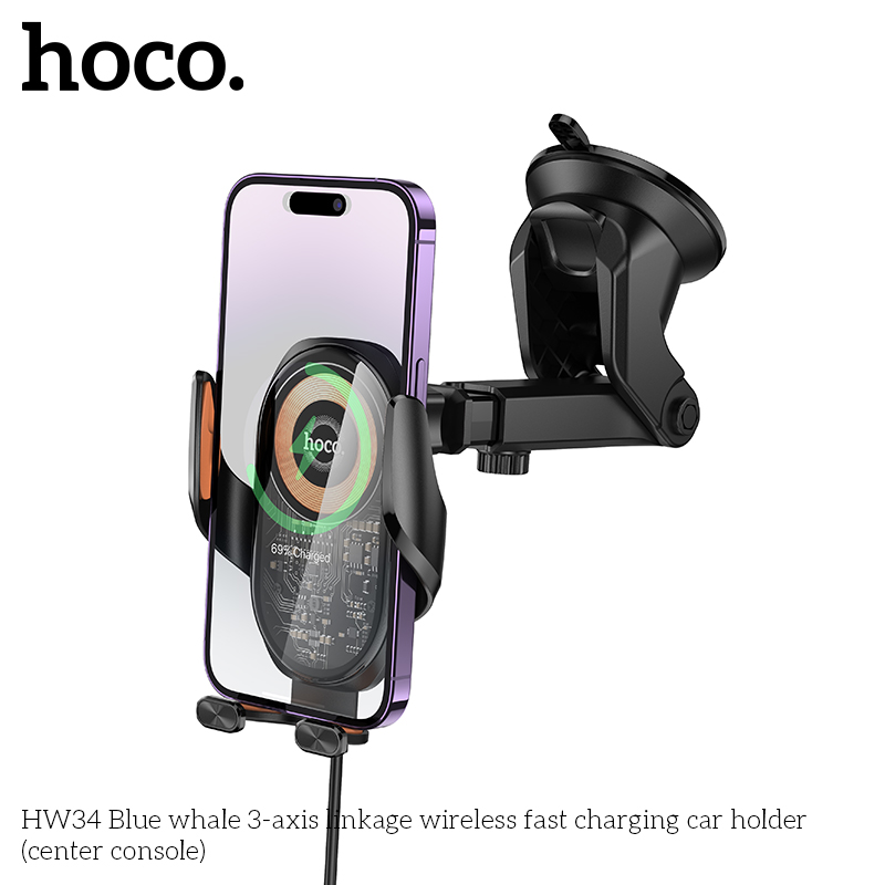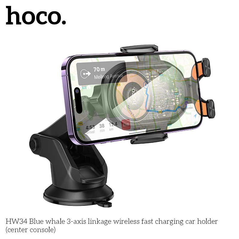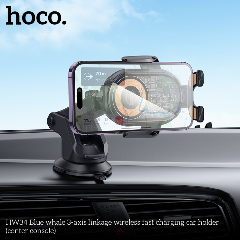 Giá đỡ điện thoại trên ô tô sạc nhanh không dây 3 trục HW34 Blue Whale (bảng điều khiển trung tâm)