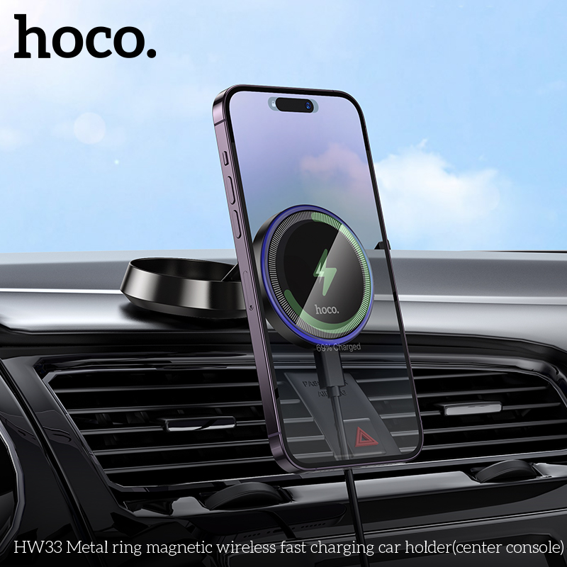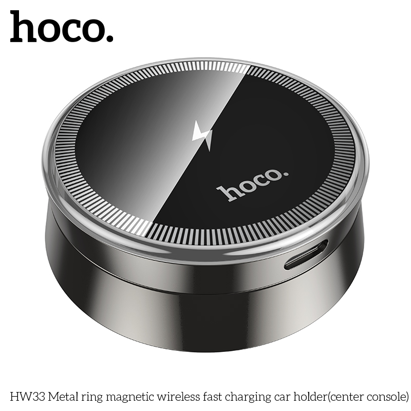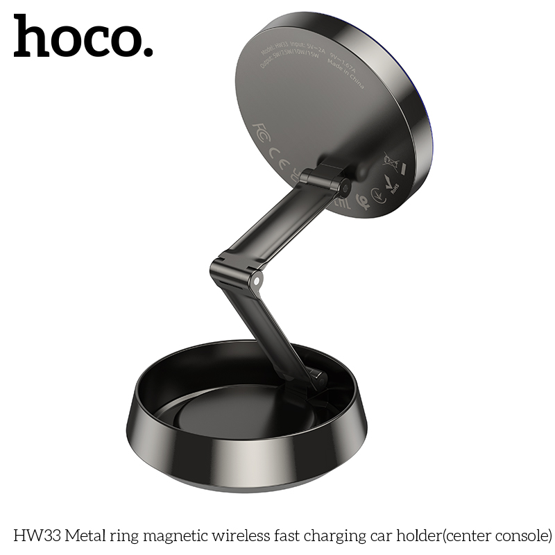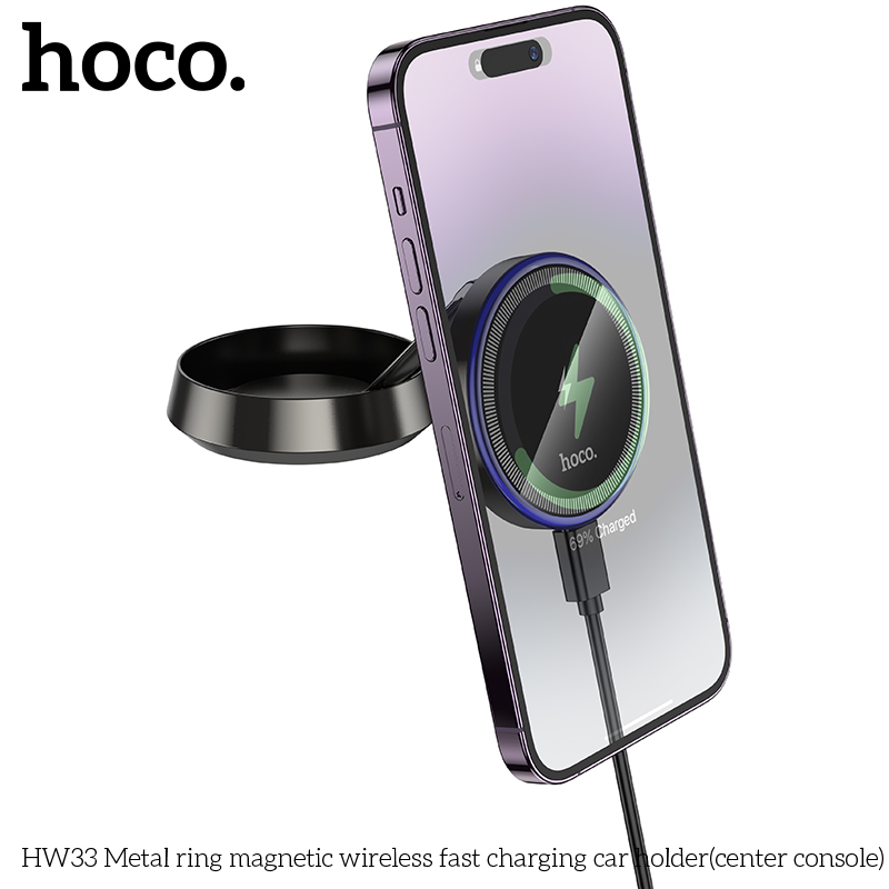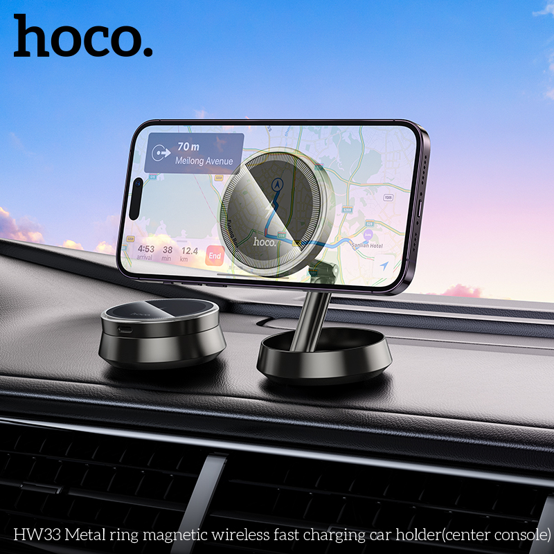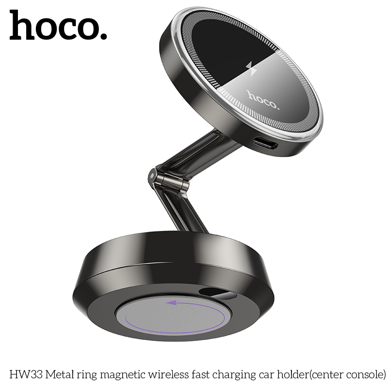 Giá đỡ ô tô sạc nhanh không dây từ tính vòng kim loại HW33 (bảng điều khiển trung tâm)