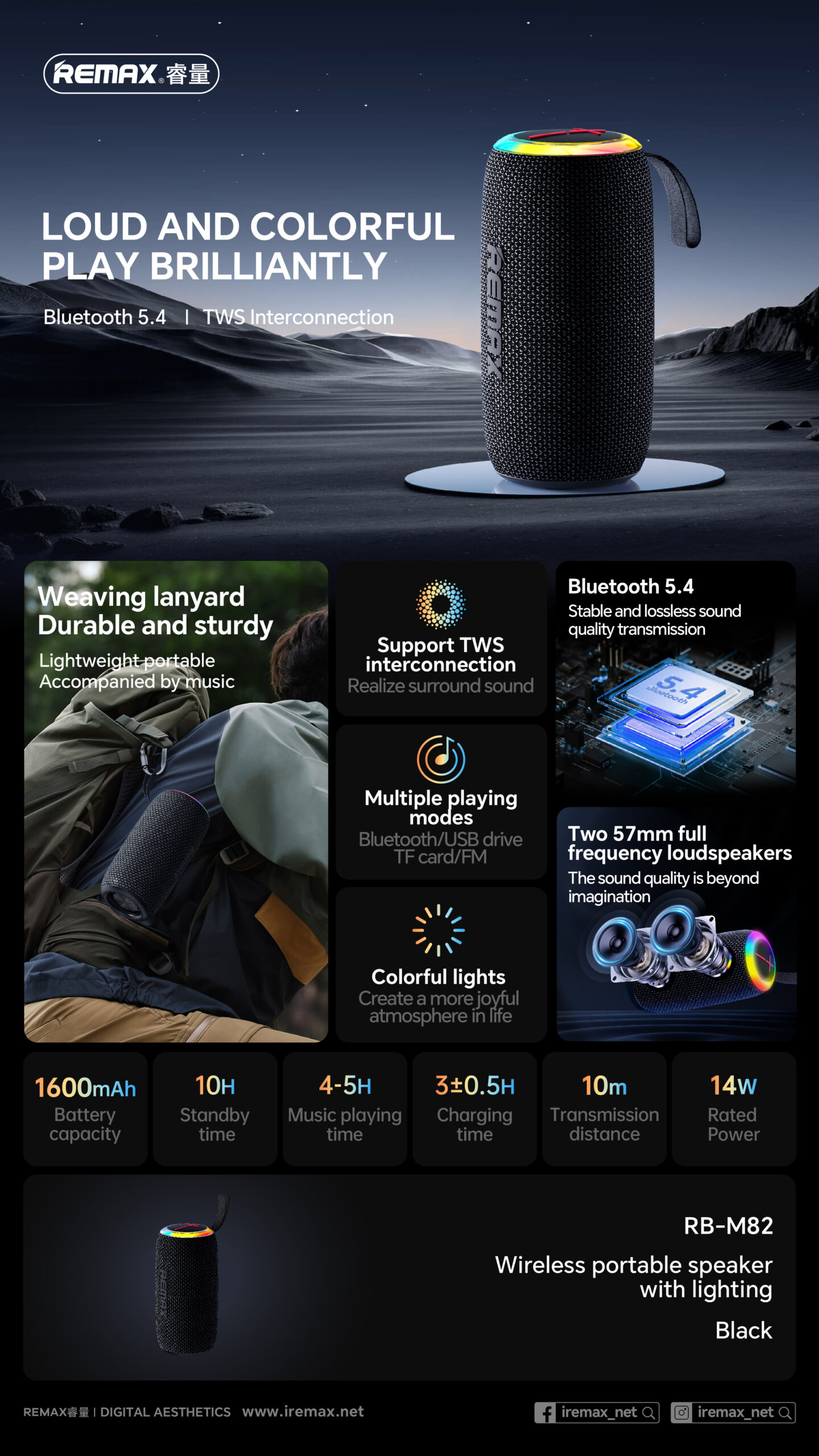 Loa REMAX RB-M82 Party Light Portable 14W