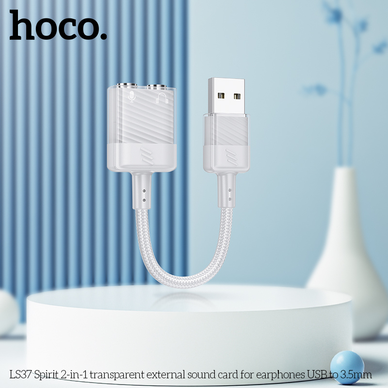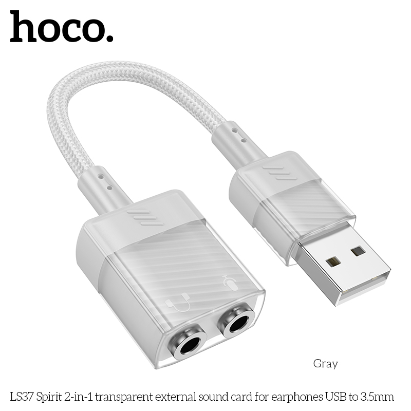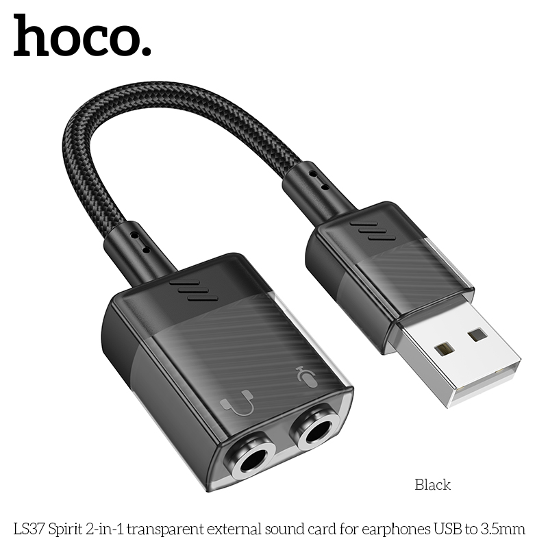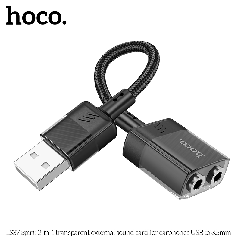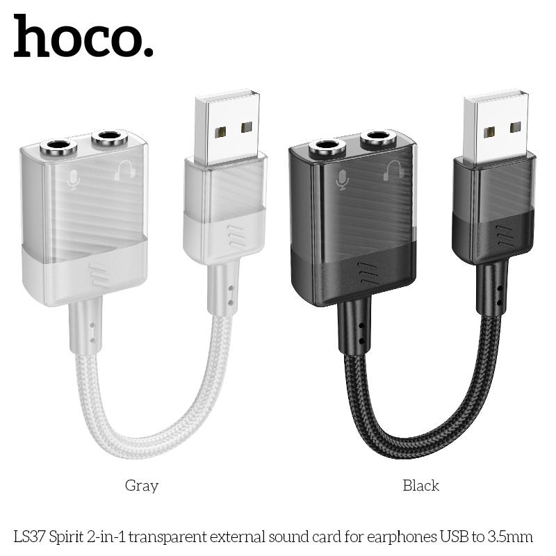 LS37 Spirit Card âm thanh ngoài trong suốt 2 trong 1 cho tai nghe USB sang 3,5mm