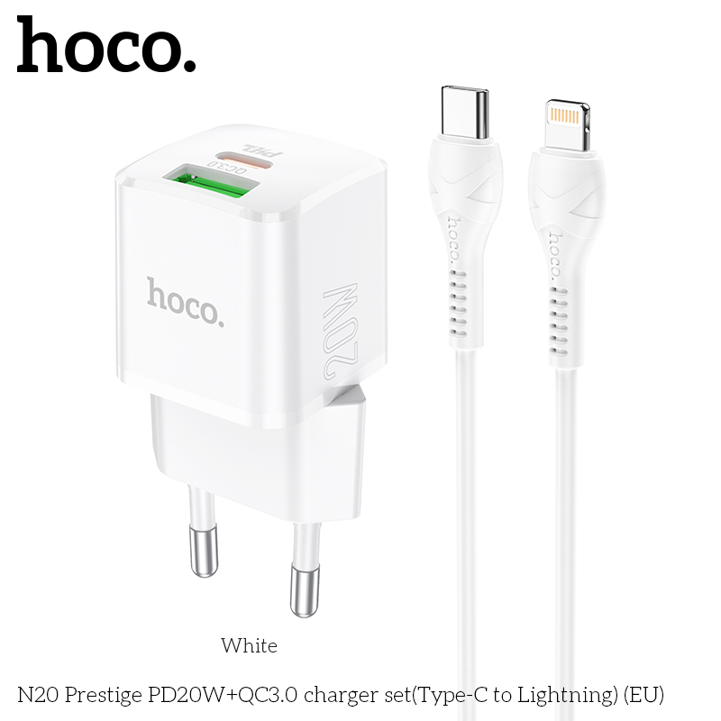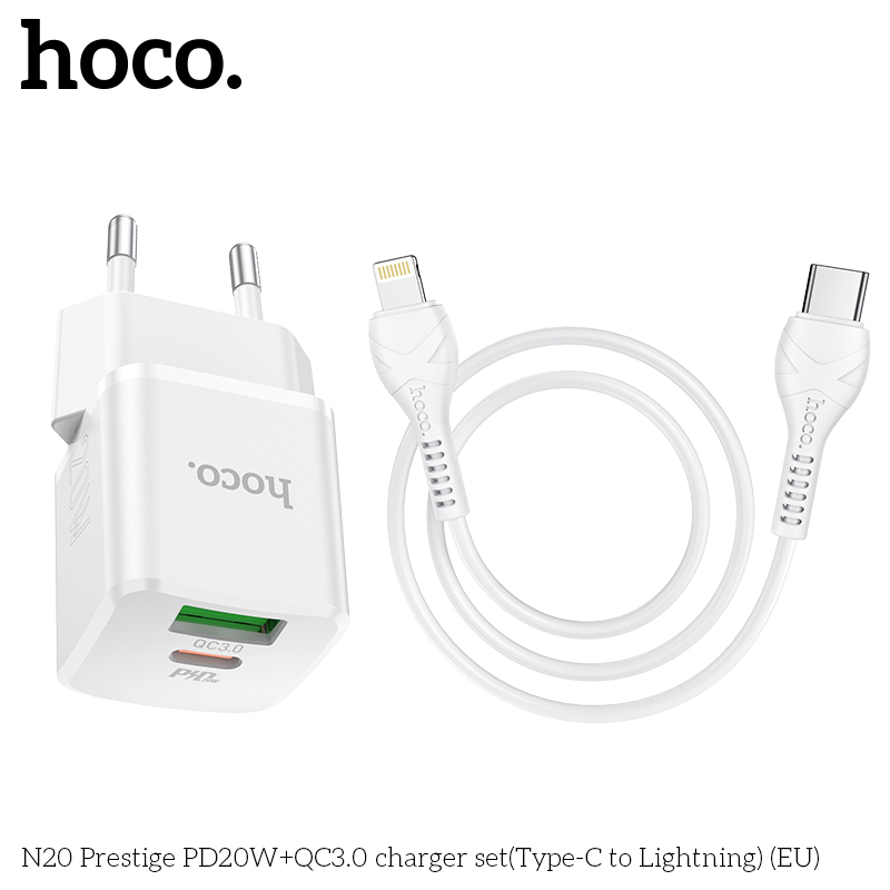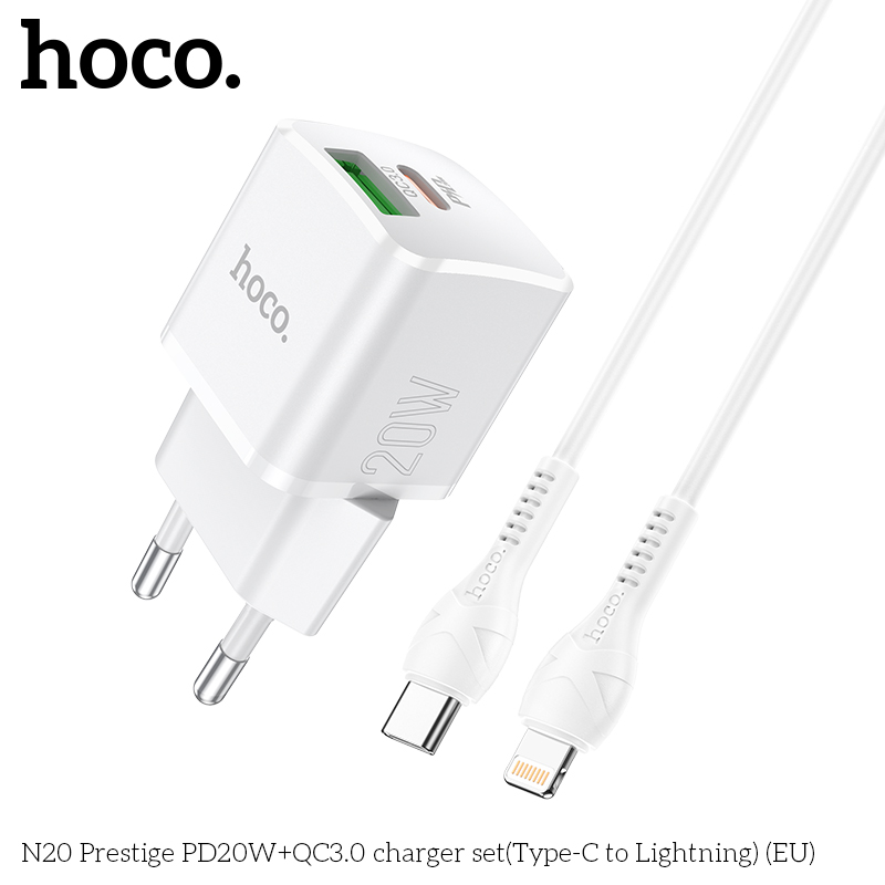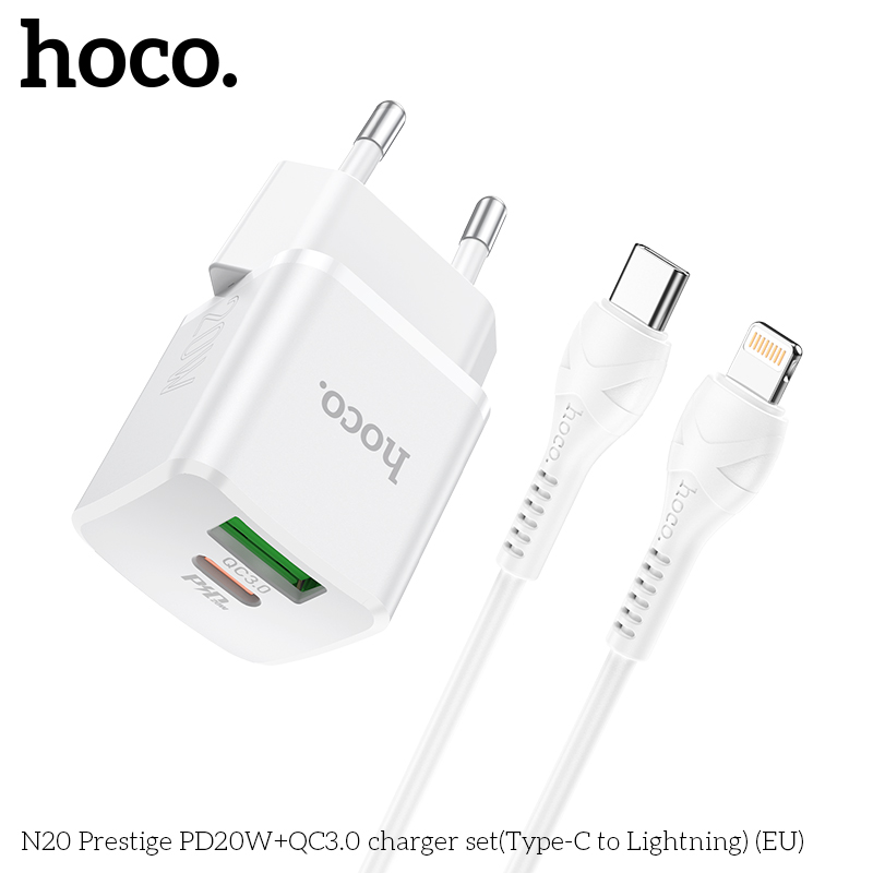 N20 Bộ sạc nhanh PD20W+QC3.0(Type-C to iP)(EU)