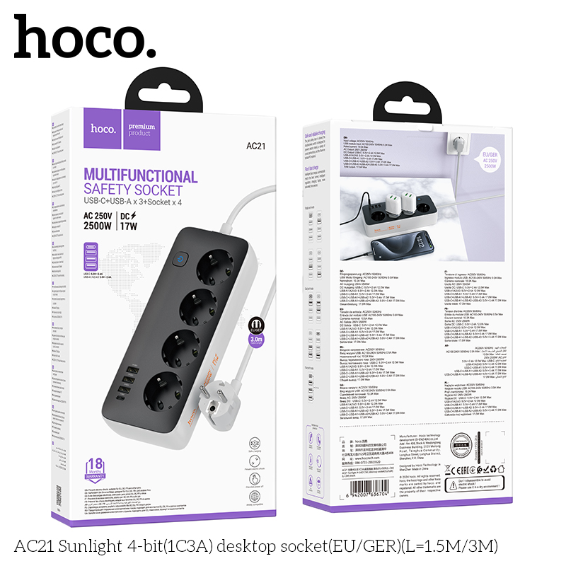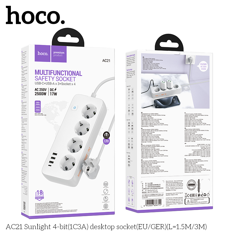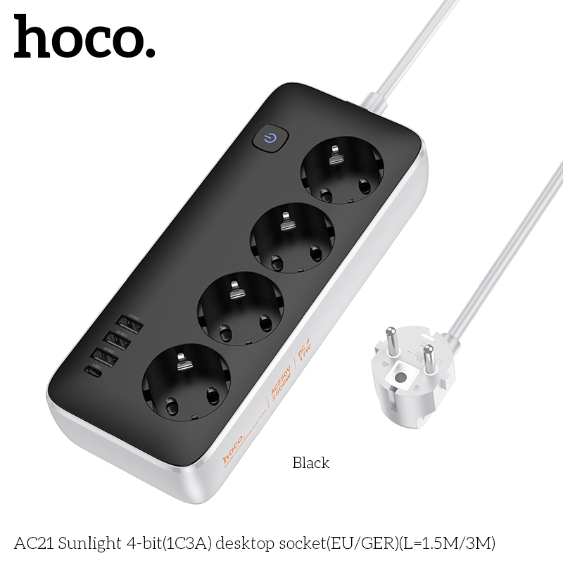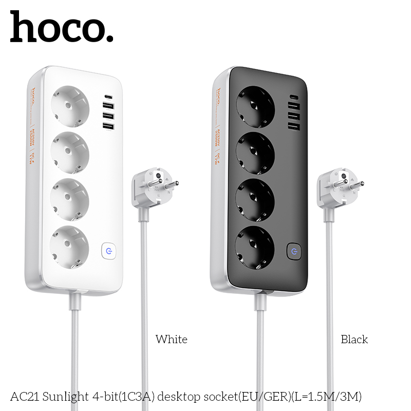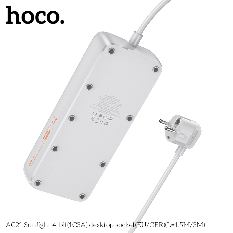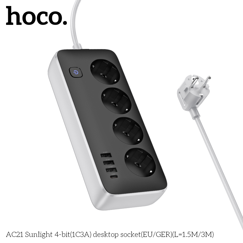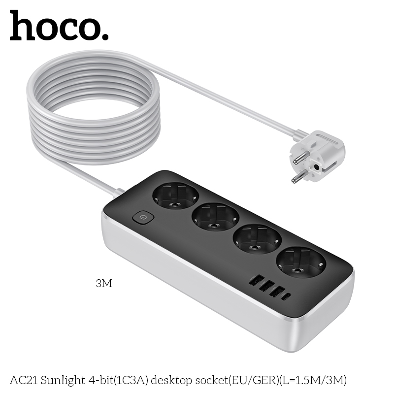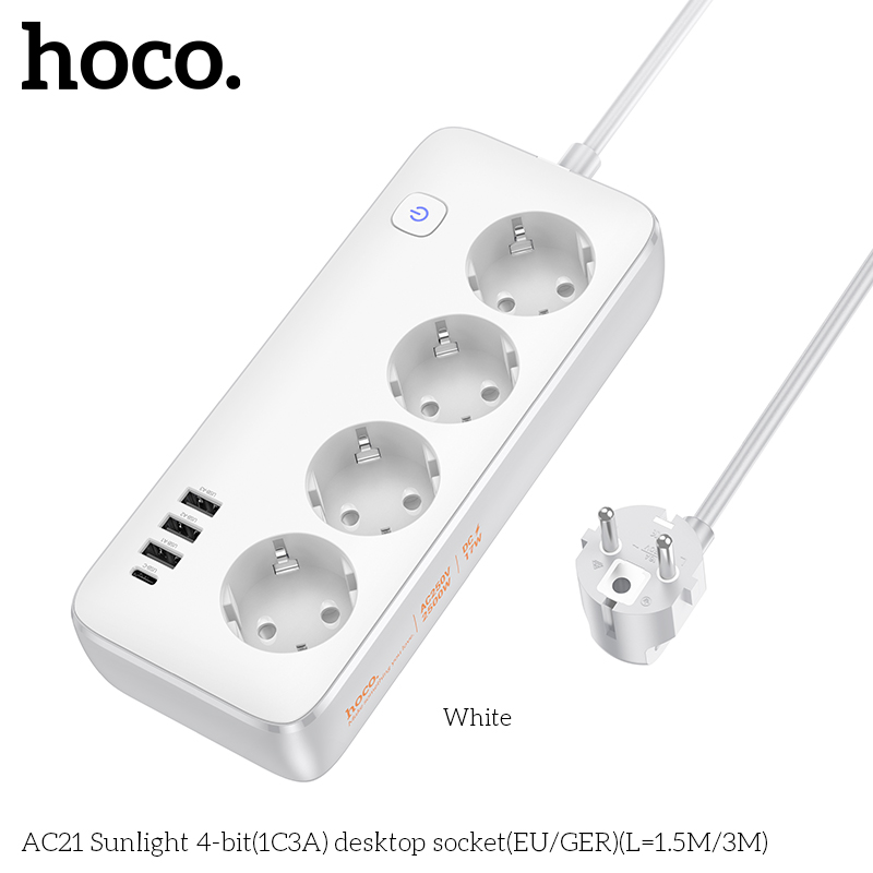 Ổ cắm để bàn AC21 Sunlight 4-bit (1C3A) (EU/GER) (D=3M)