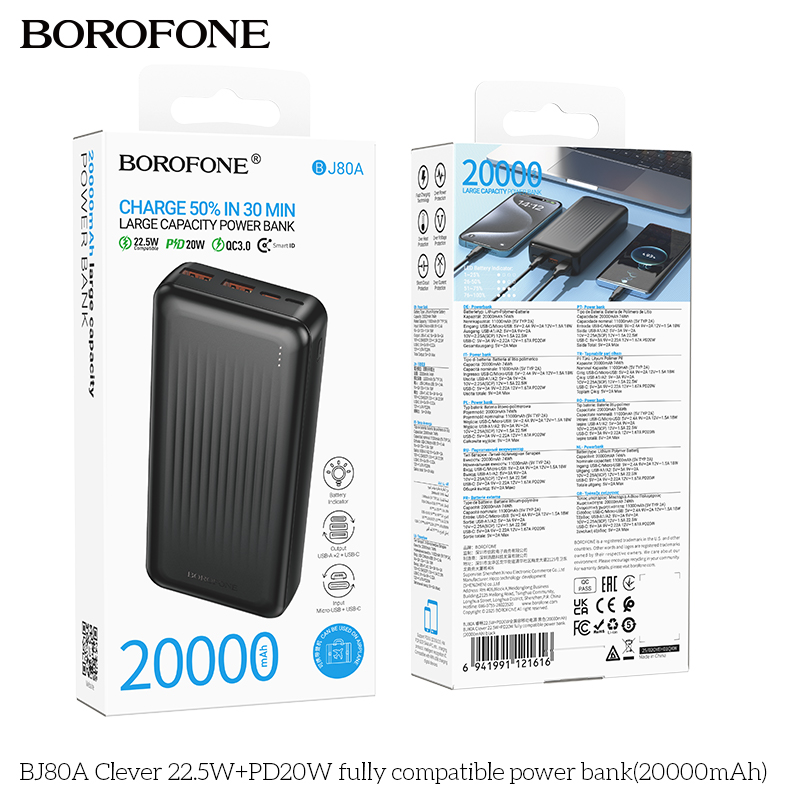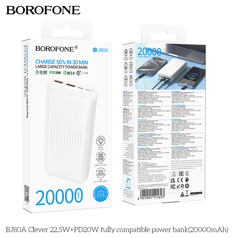 Pin dự phòng BJ80A Clever 22.5W+PD20W tương thích hoàn toàn (20000mAh)