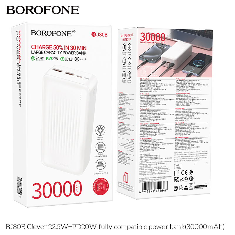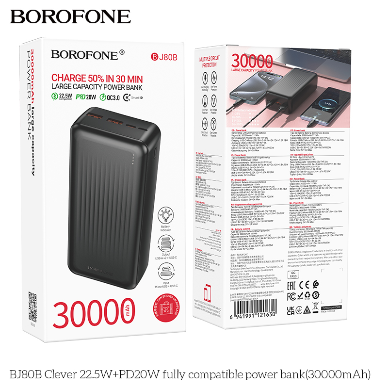 Pin dự phòng BJ80B Clever 22.5W+PD20W tương thích hoàn toàn (30000mAh)