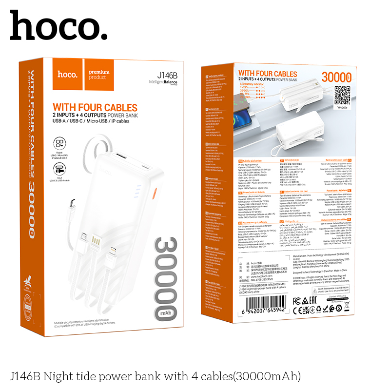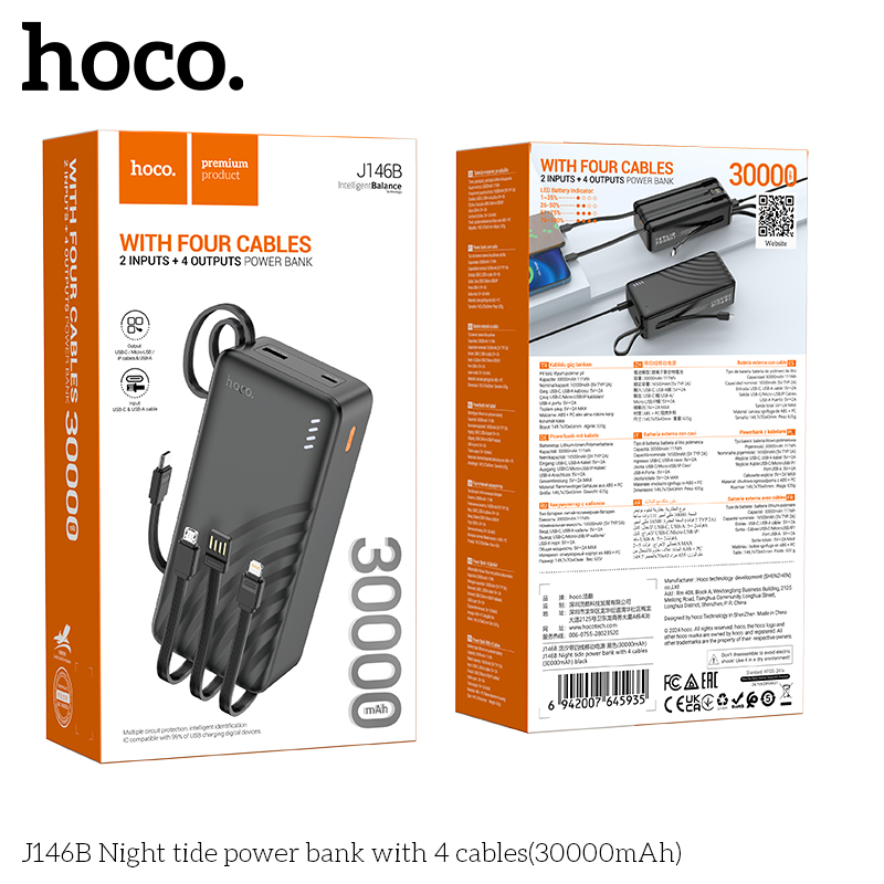 Pin dự phòng J146B Night Tide kèm 4 dây cáp (30000mAh)