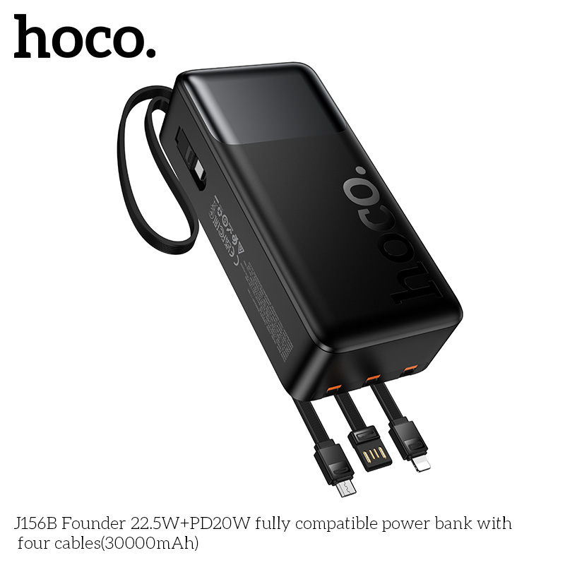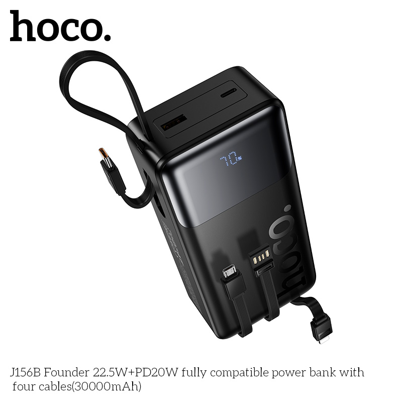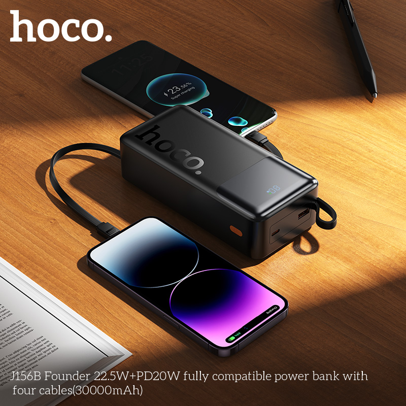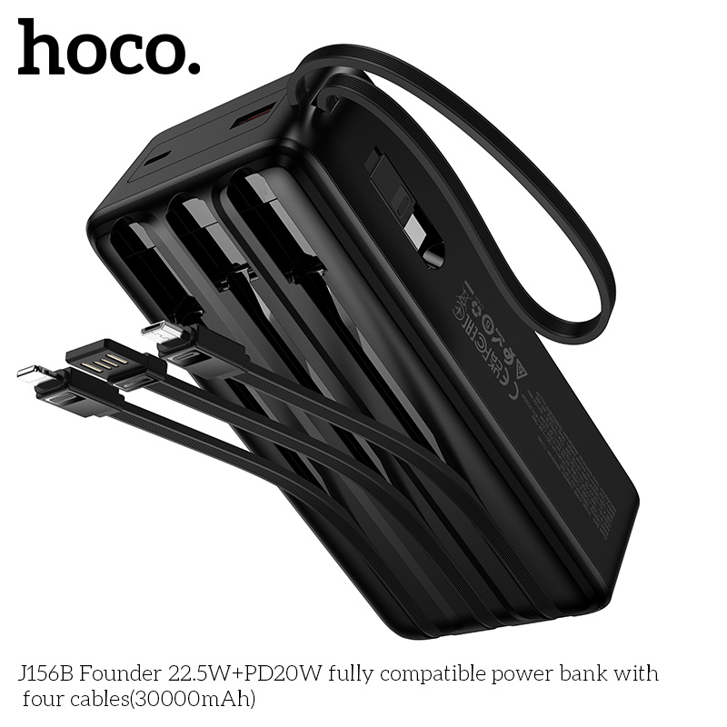 Pin dự phòng tương thích hoàn toàn J156B Founder 22.5W+PD20W với bốn dây cáp (30000mAh)
