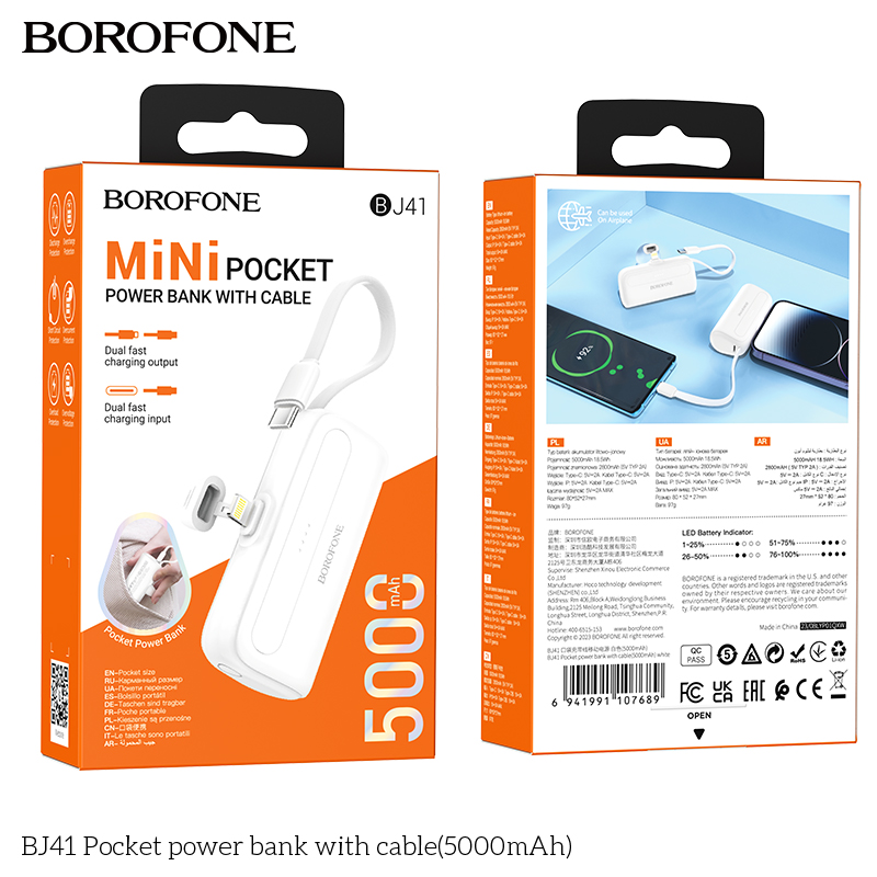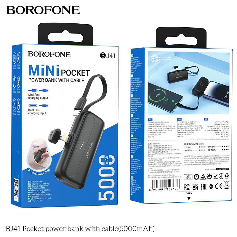 Sạc dự phòng bỏ túi BJ41 có dây cáp (5000mAh)