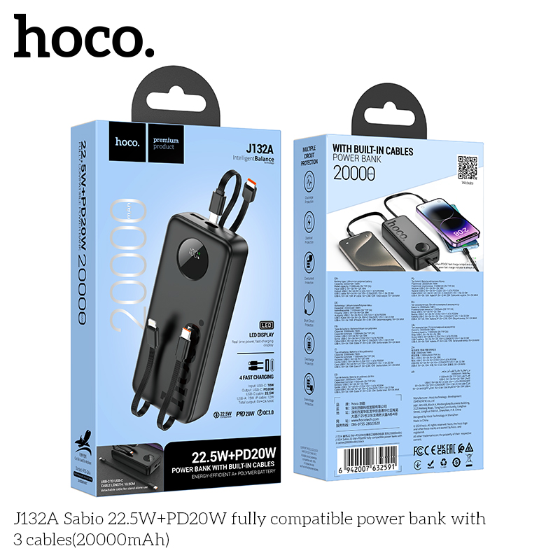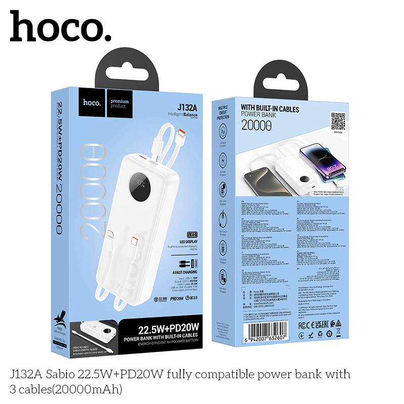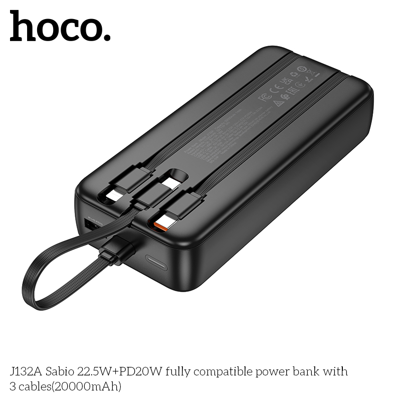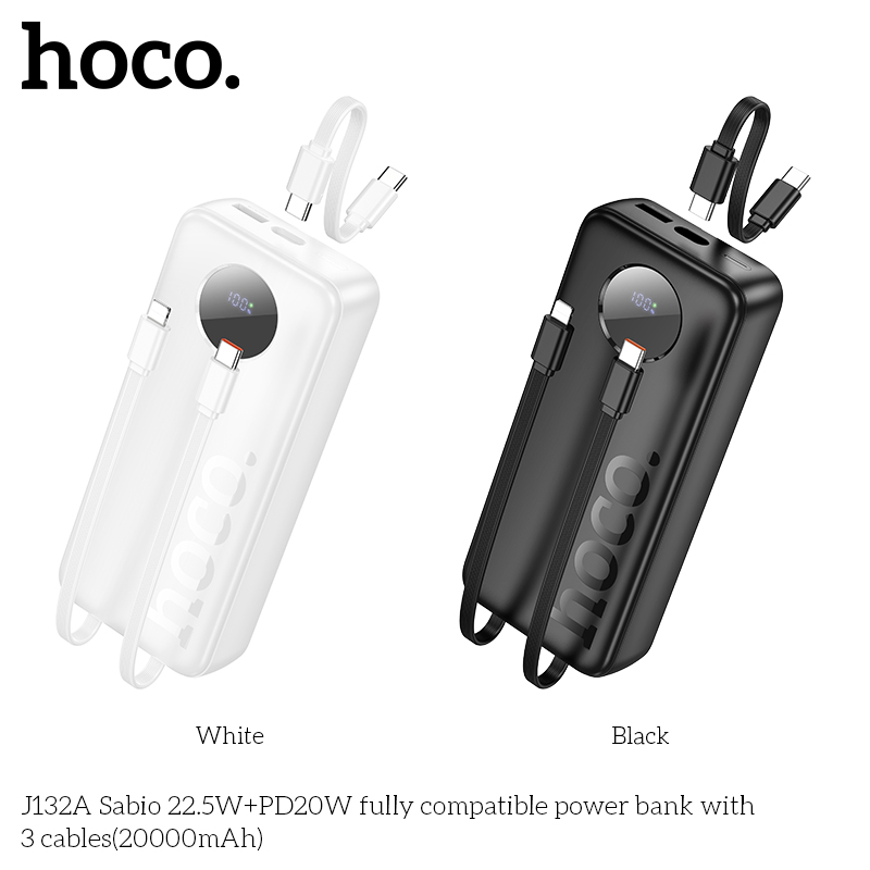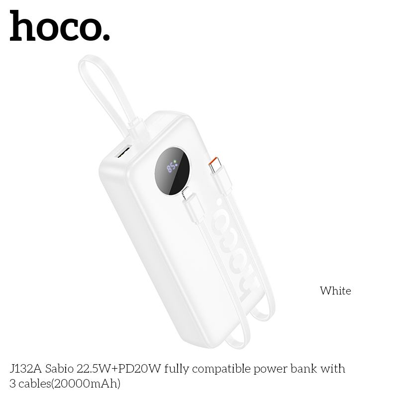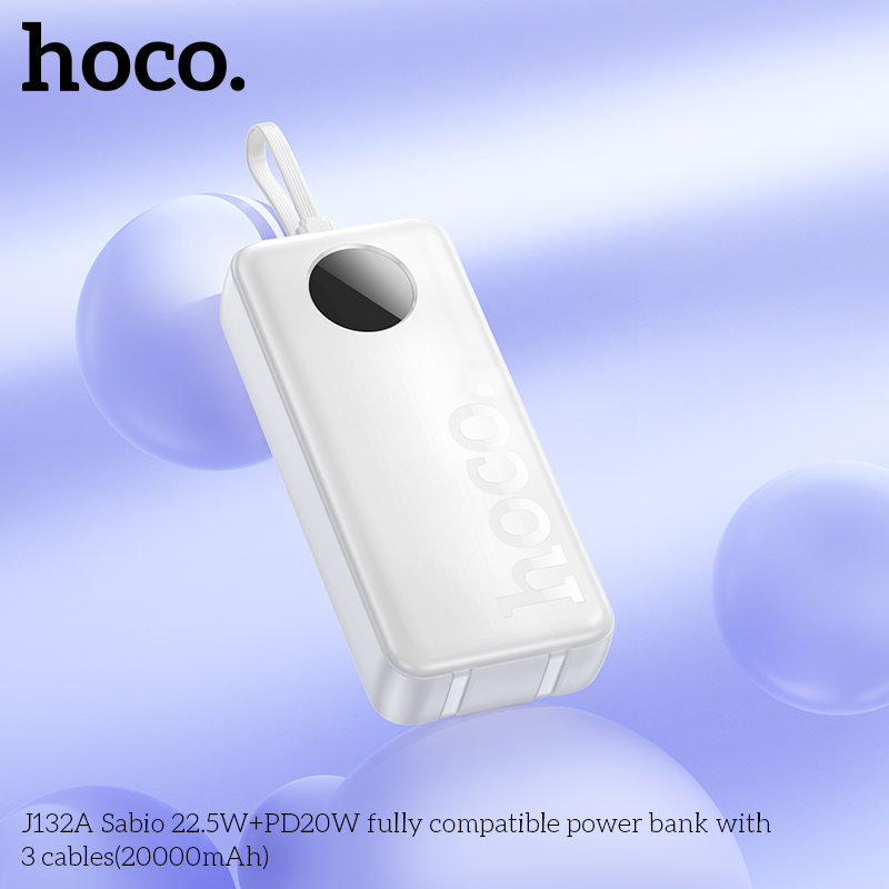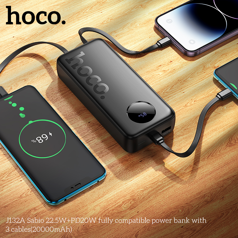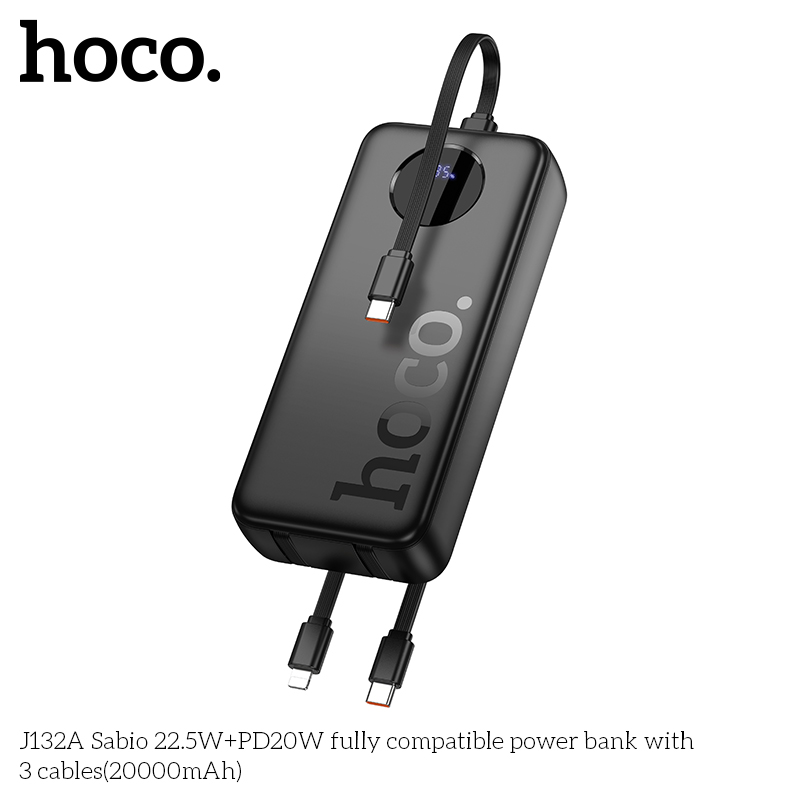 Sạc dự phòng J132A Sabio 22.5W+PD20W với 3 dây cáp (20000mAh)