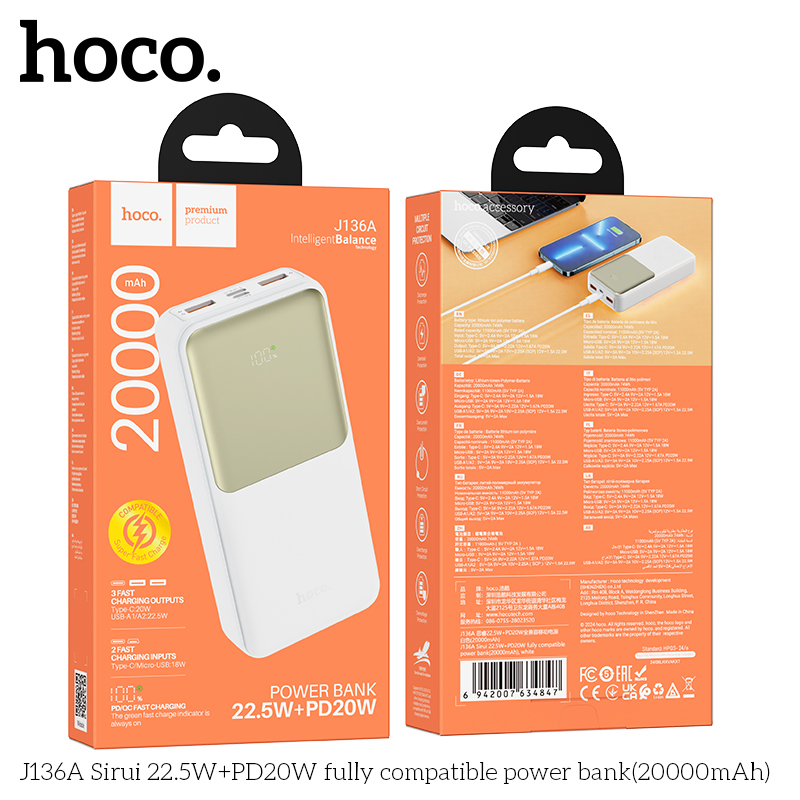 Sạc dự phòng J136A Sirui 22.5W+PD20W (20000mAh)