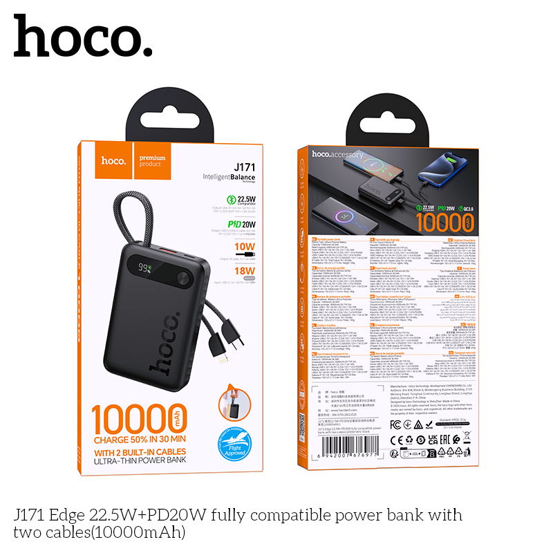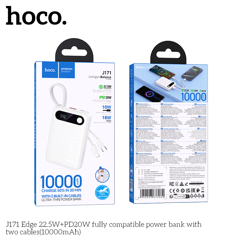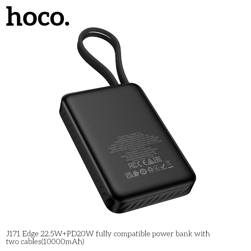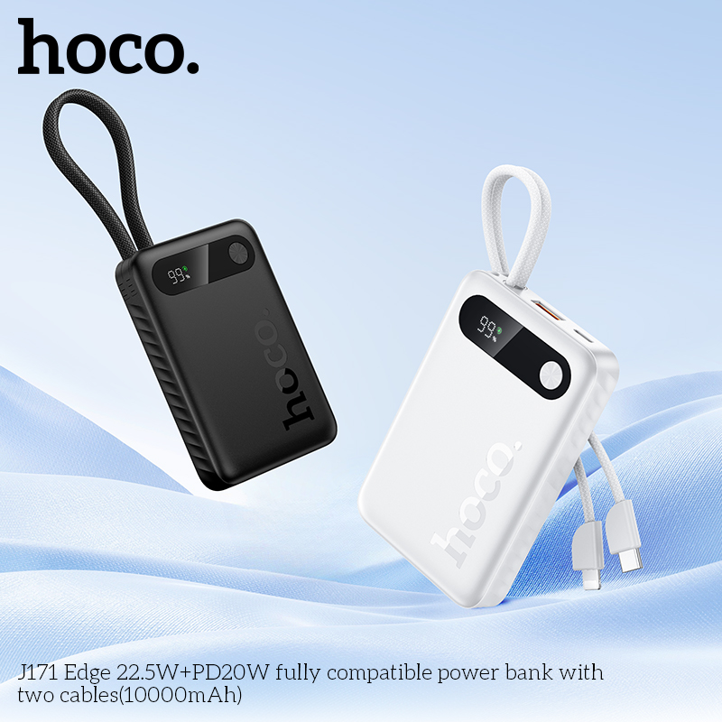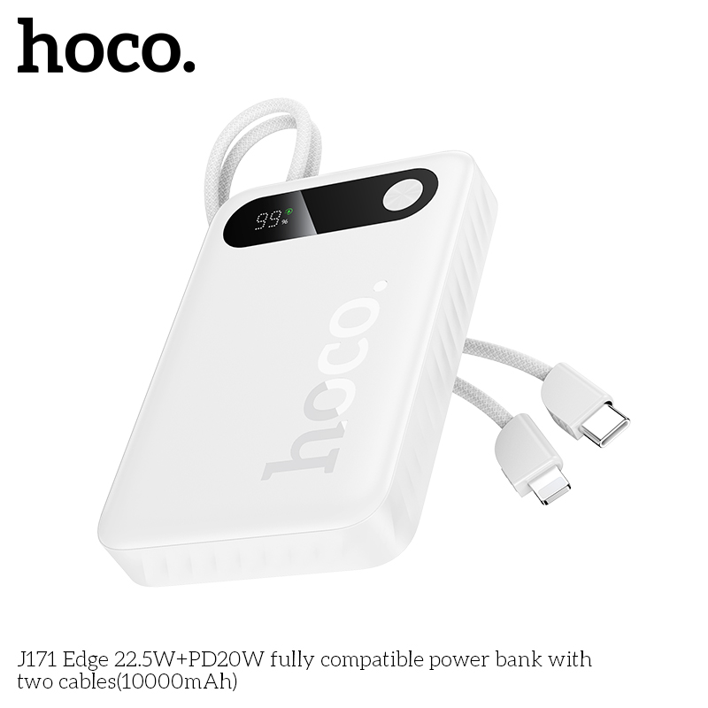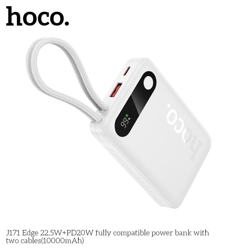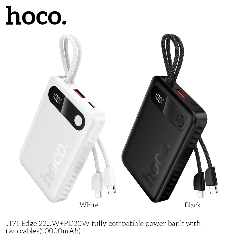 Sạc dự phòng J171 Edge 22.5W + PD20W tương thích hoàn toàn, kèm hai cáp (10000mAh)