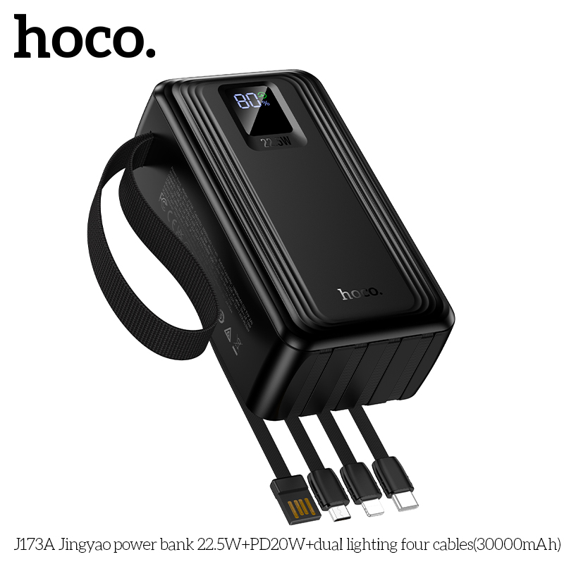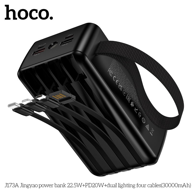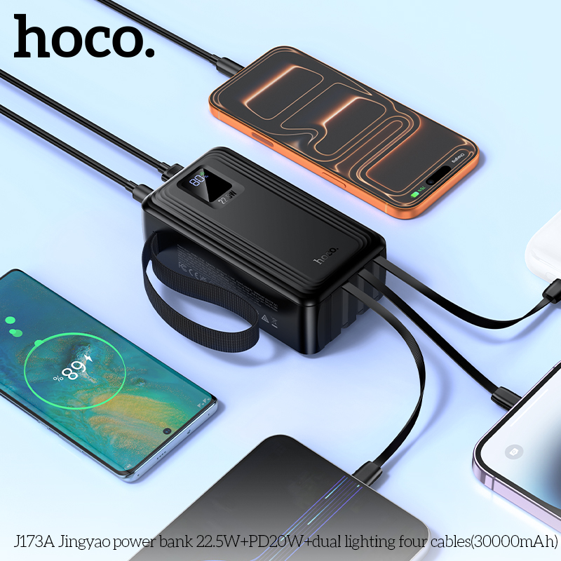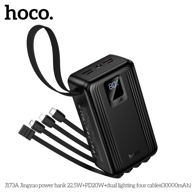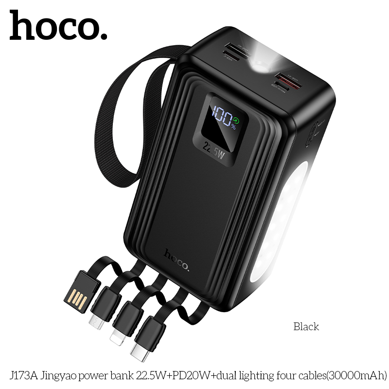 Sạc dự phòng J173A Jingyao 22.5W + PD20W + cáp sạc kép Lightning (30000mAh)