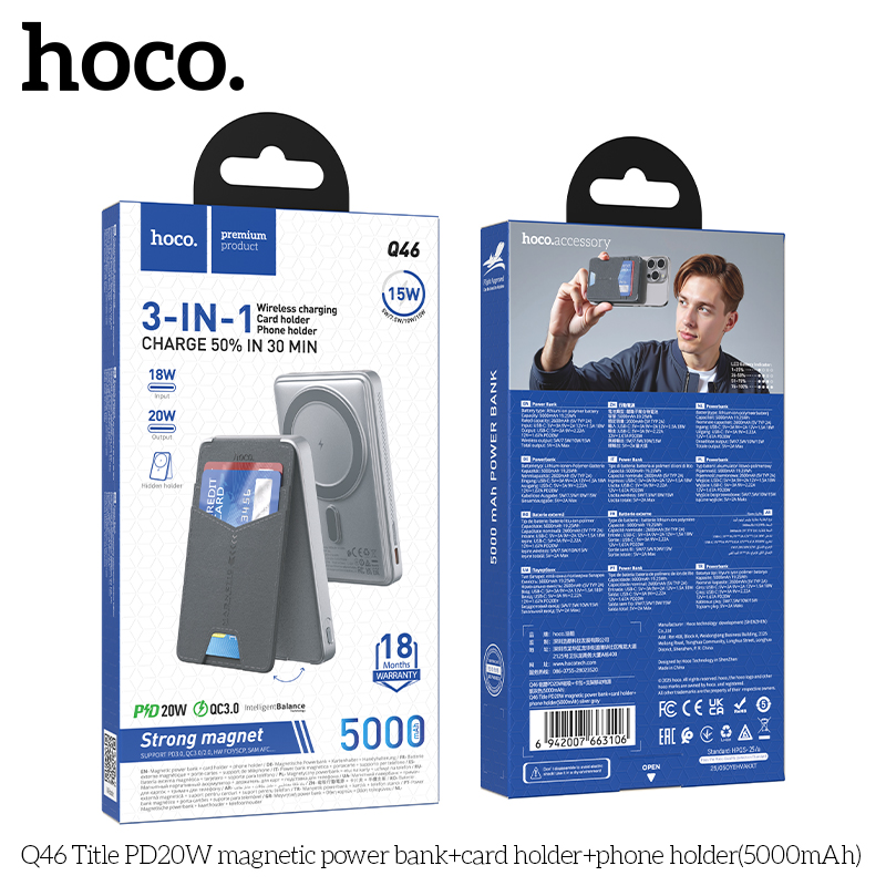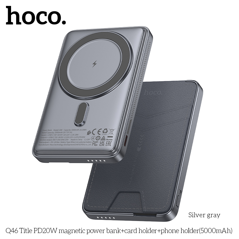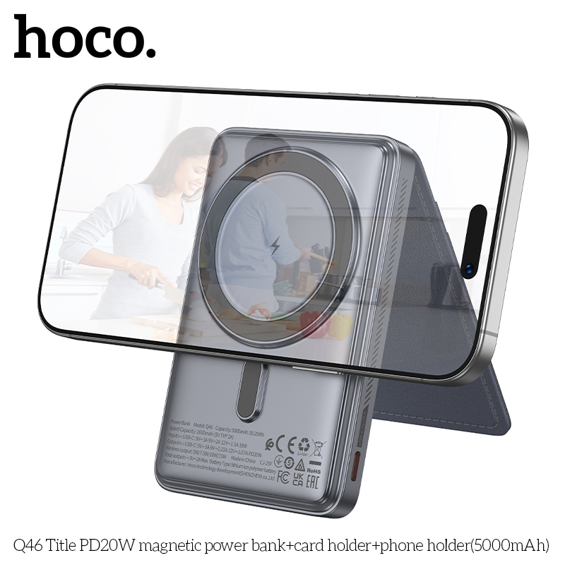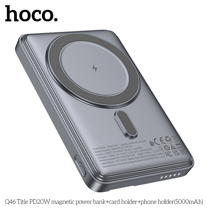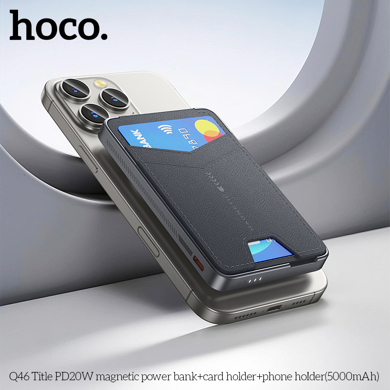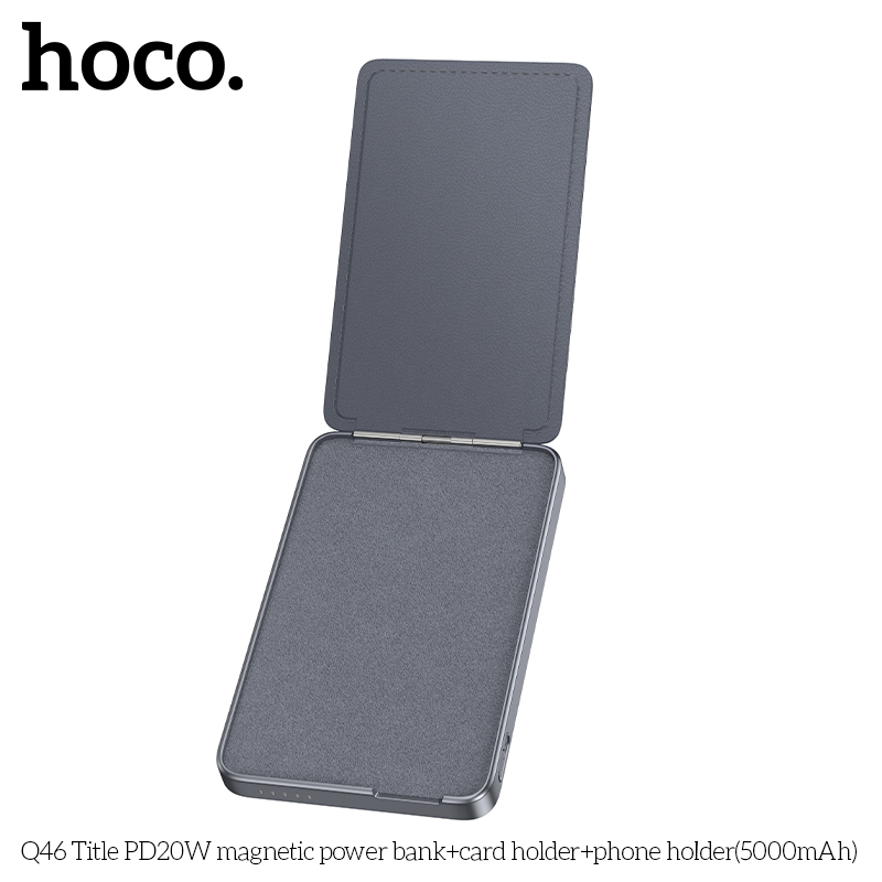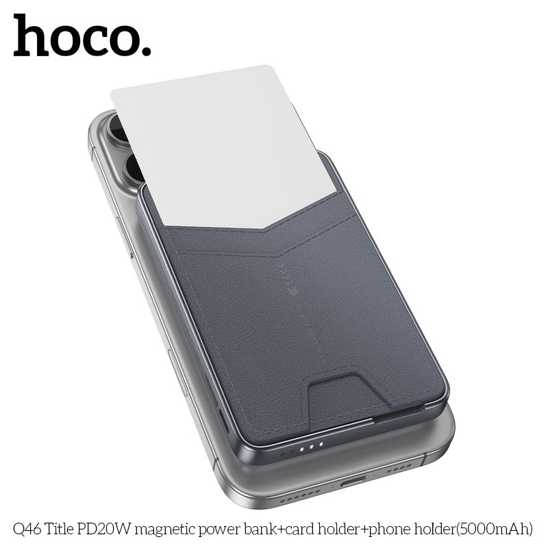 Sạc dự phòng từ tính Q46 Title PD20W + ngăn đựng thẻ + giá đỡ điện thoại (5000mAh)